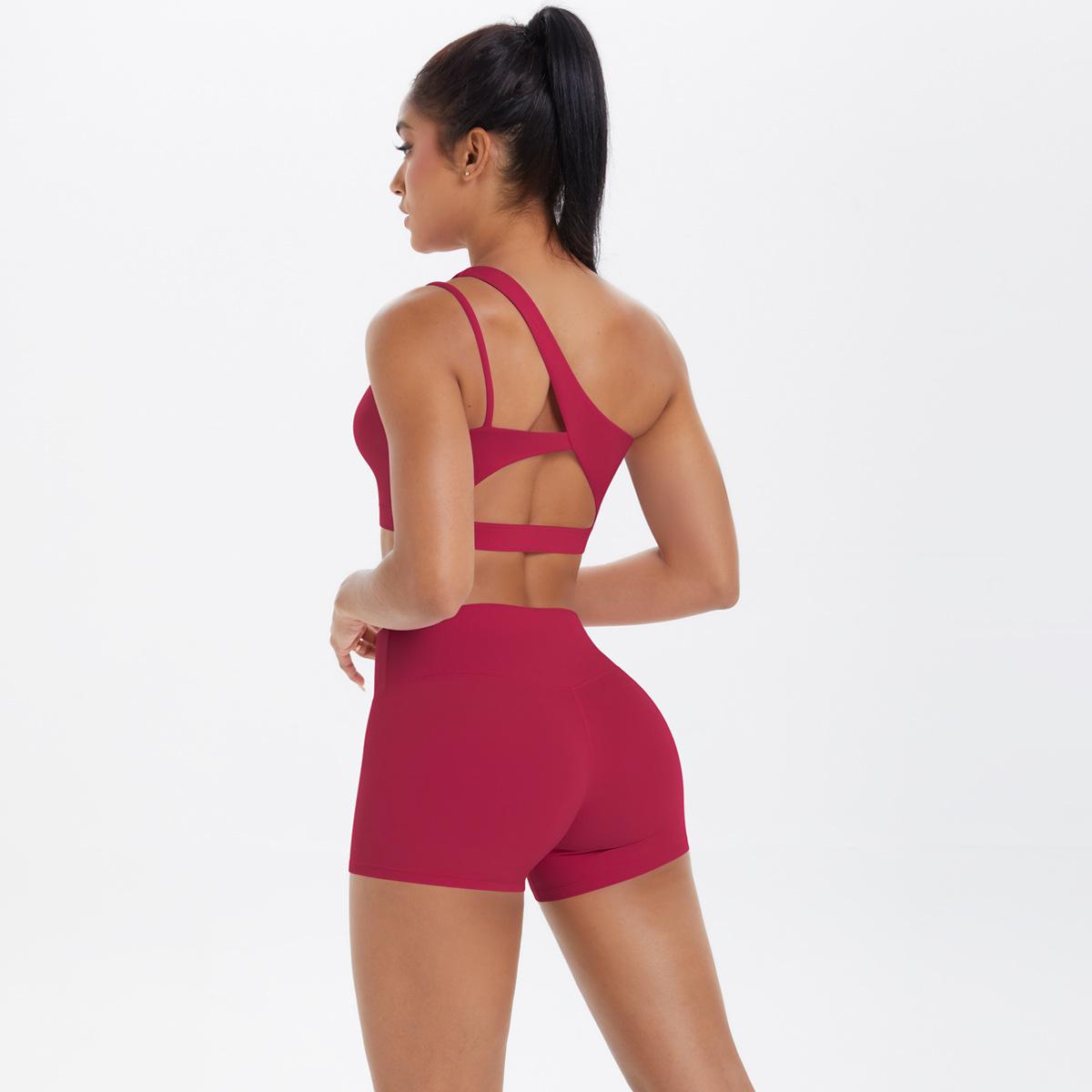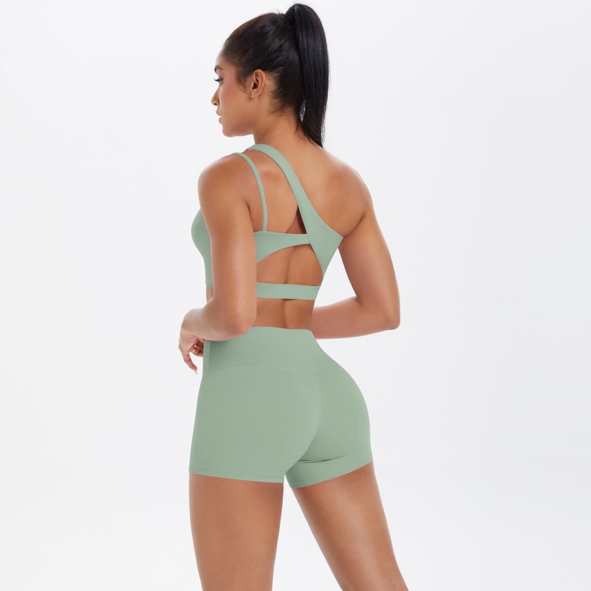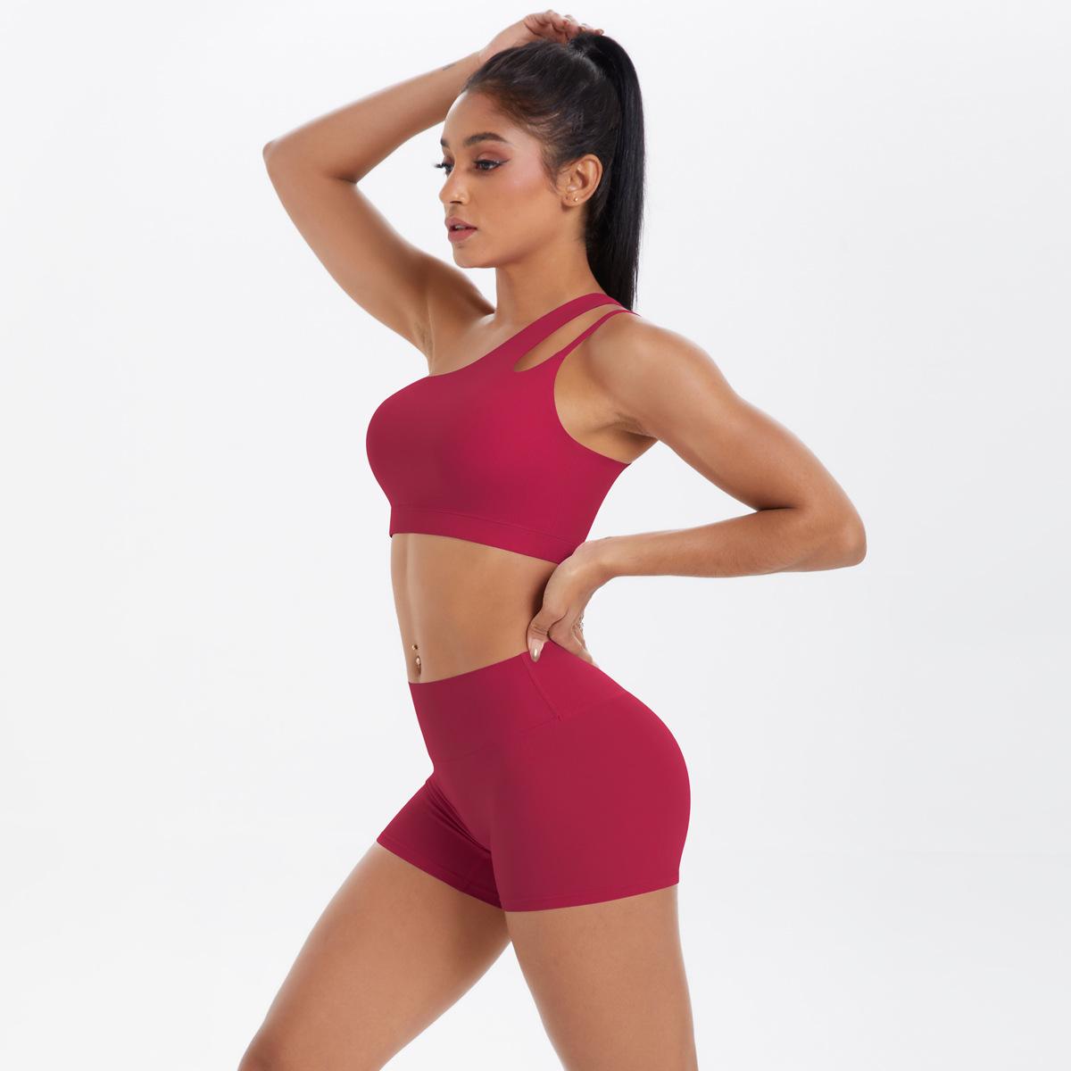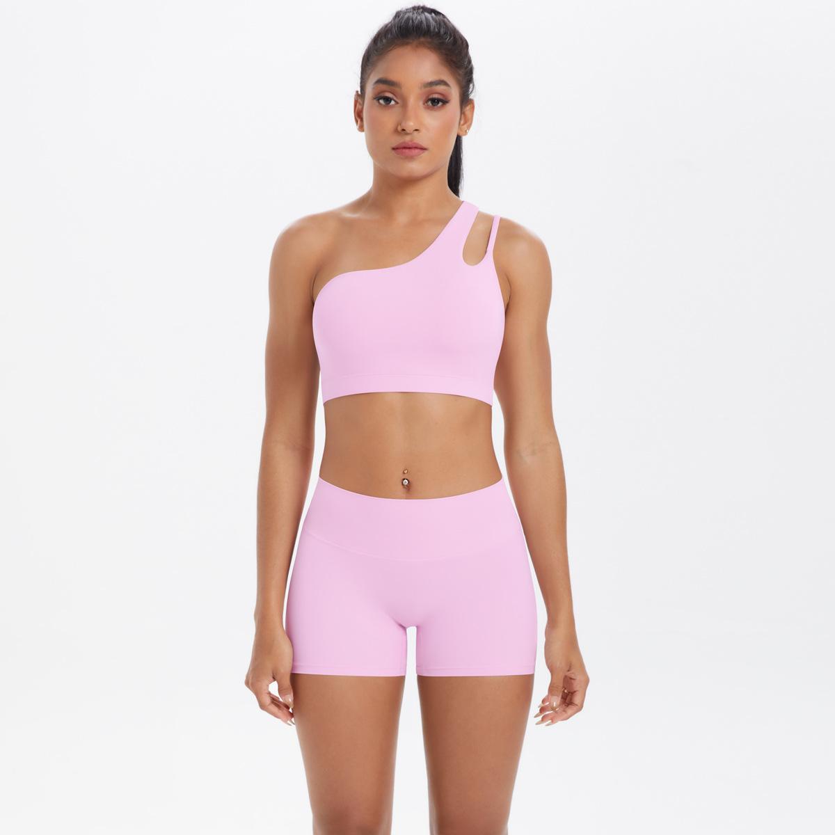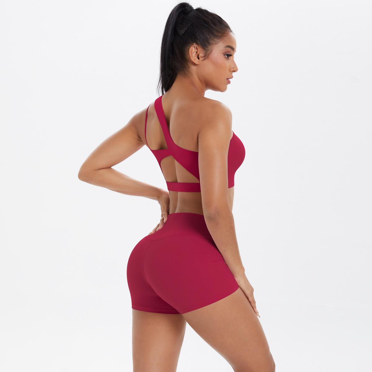Transfronterizo Nuevo Conjunto Deportivo de Yoga de un Hombro con Sensación de Nube Ajustado Cadera Secado Rápido para Correr Fitness Dos Piezas