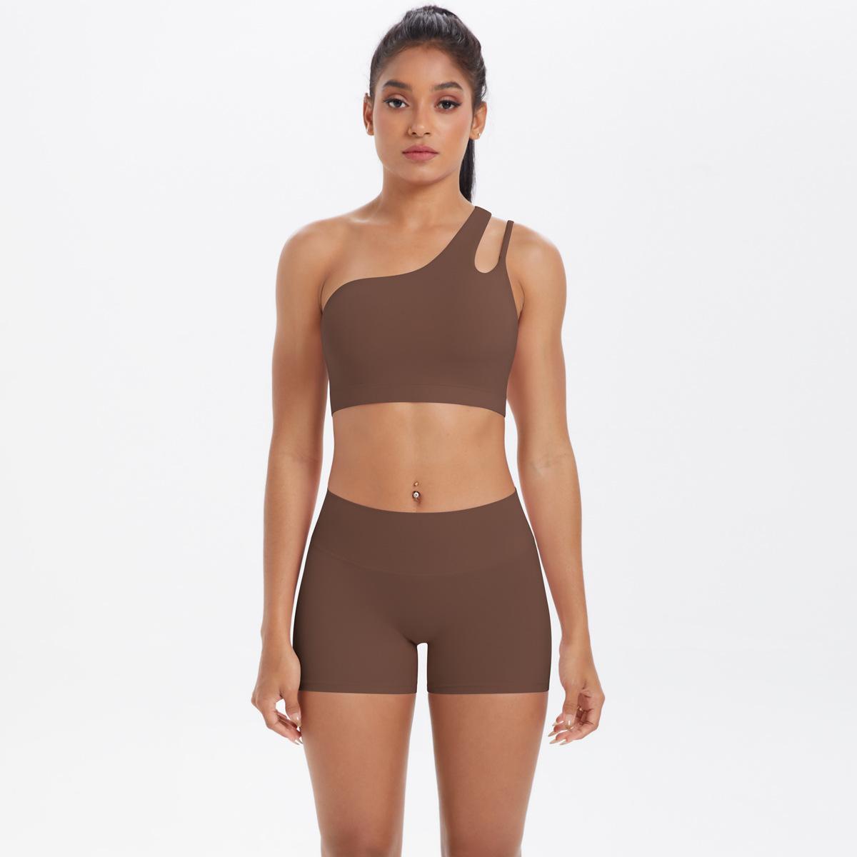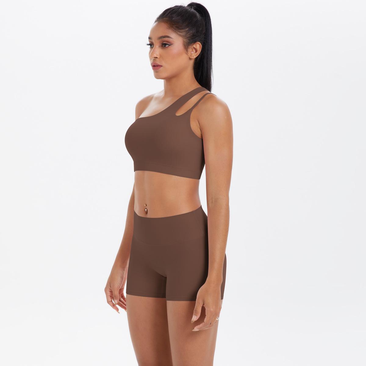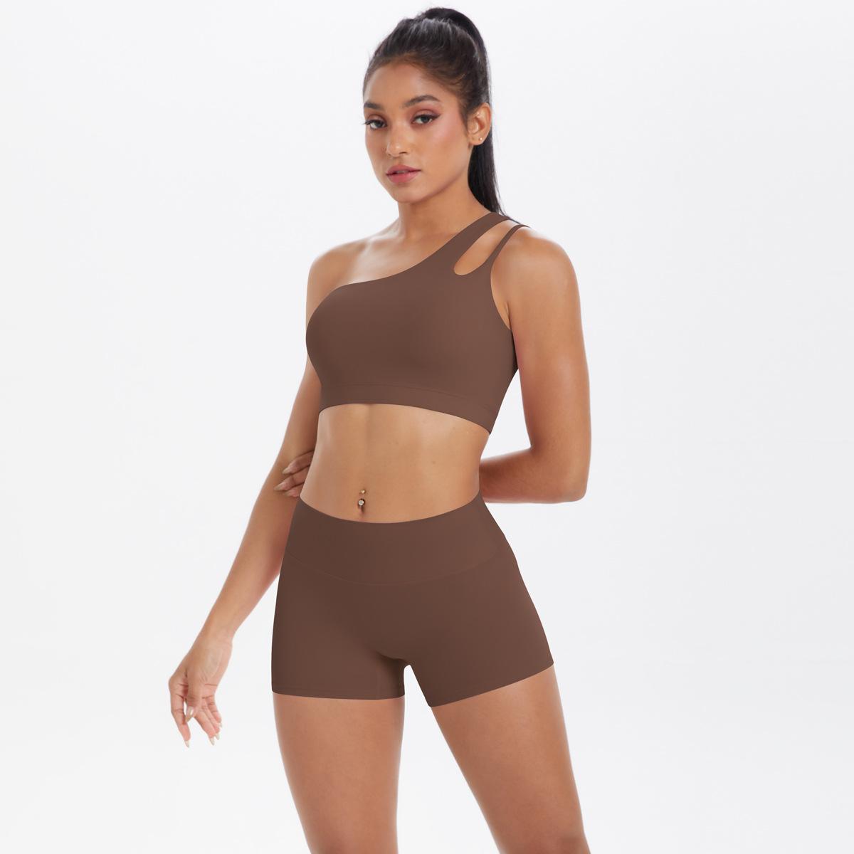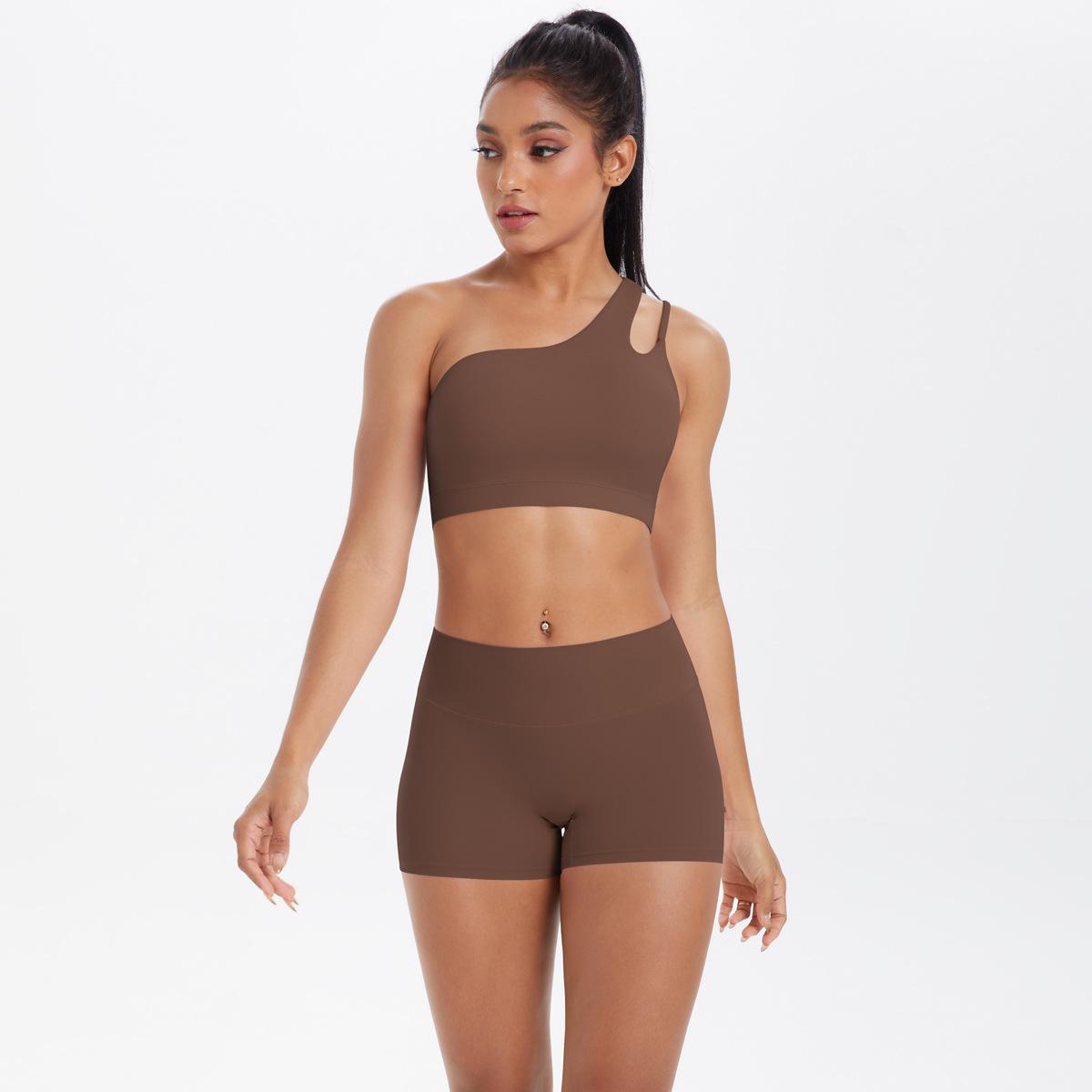 7114 one-shoulder bra + 7101 shorts set - chestnut color, 7114 one-shoulder bra + 7101 shorts set-black, 7114 ...