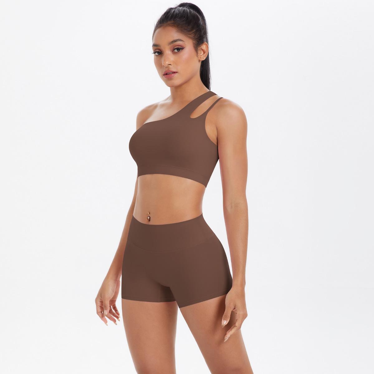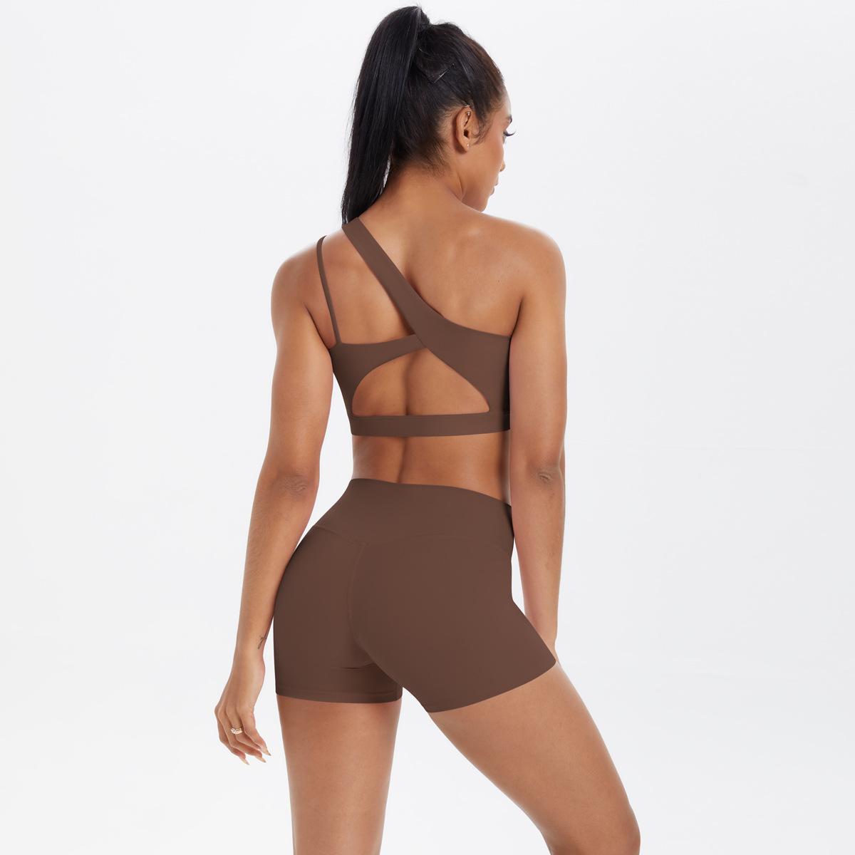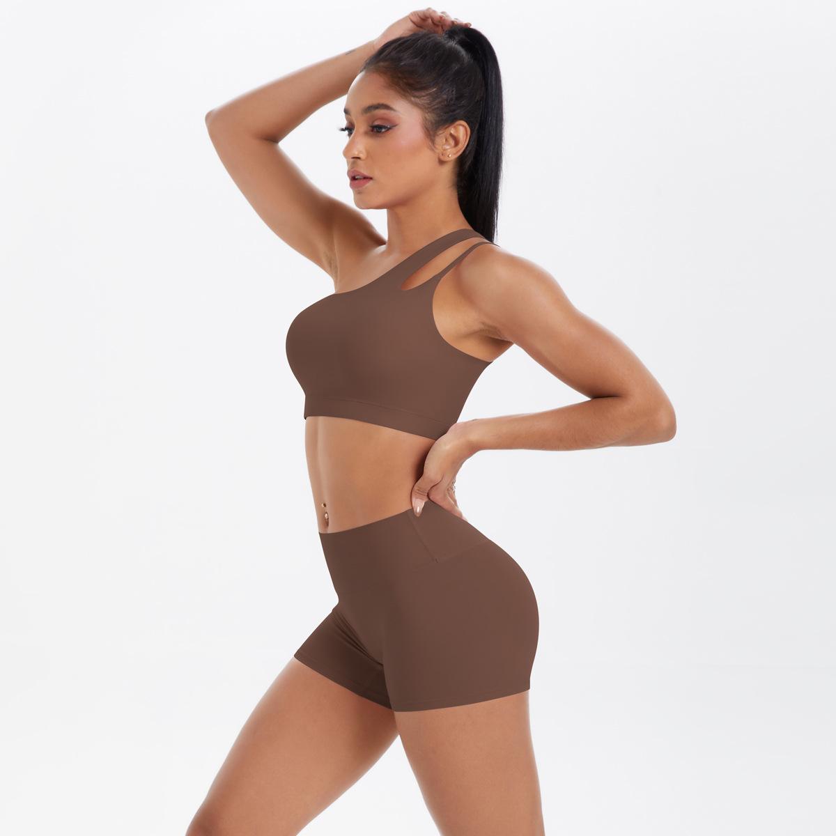 7114 one-shoulder bra + 7101 shorts set - chestnut color, 7114 one-shoulder bra + 7101 shorts set-black, 7114 ...