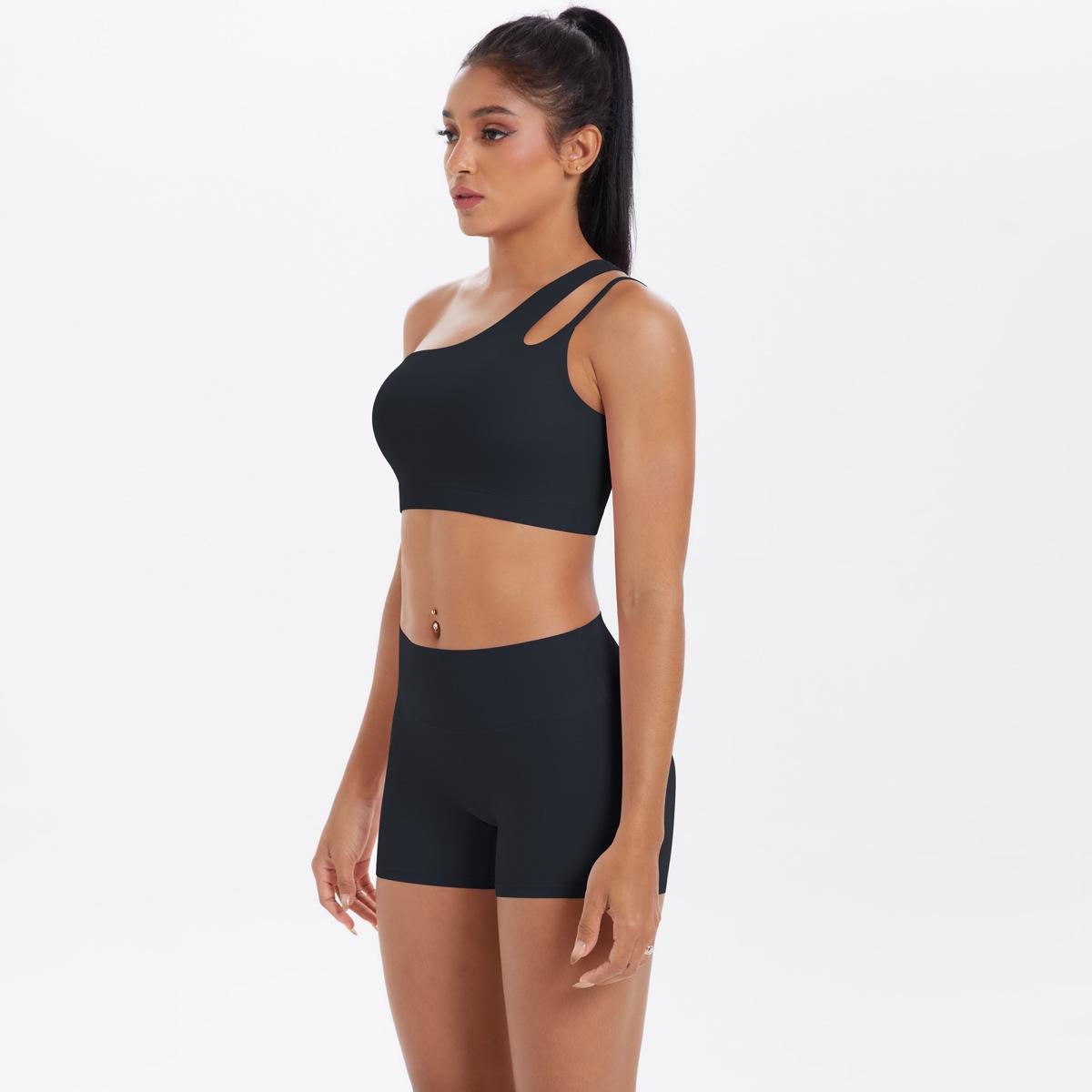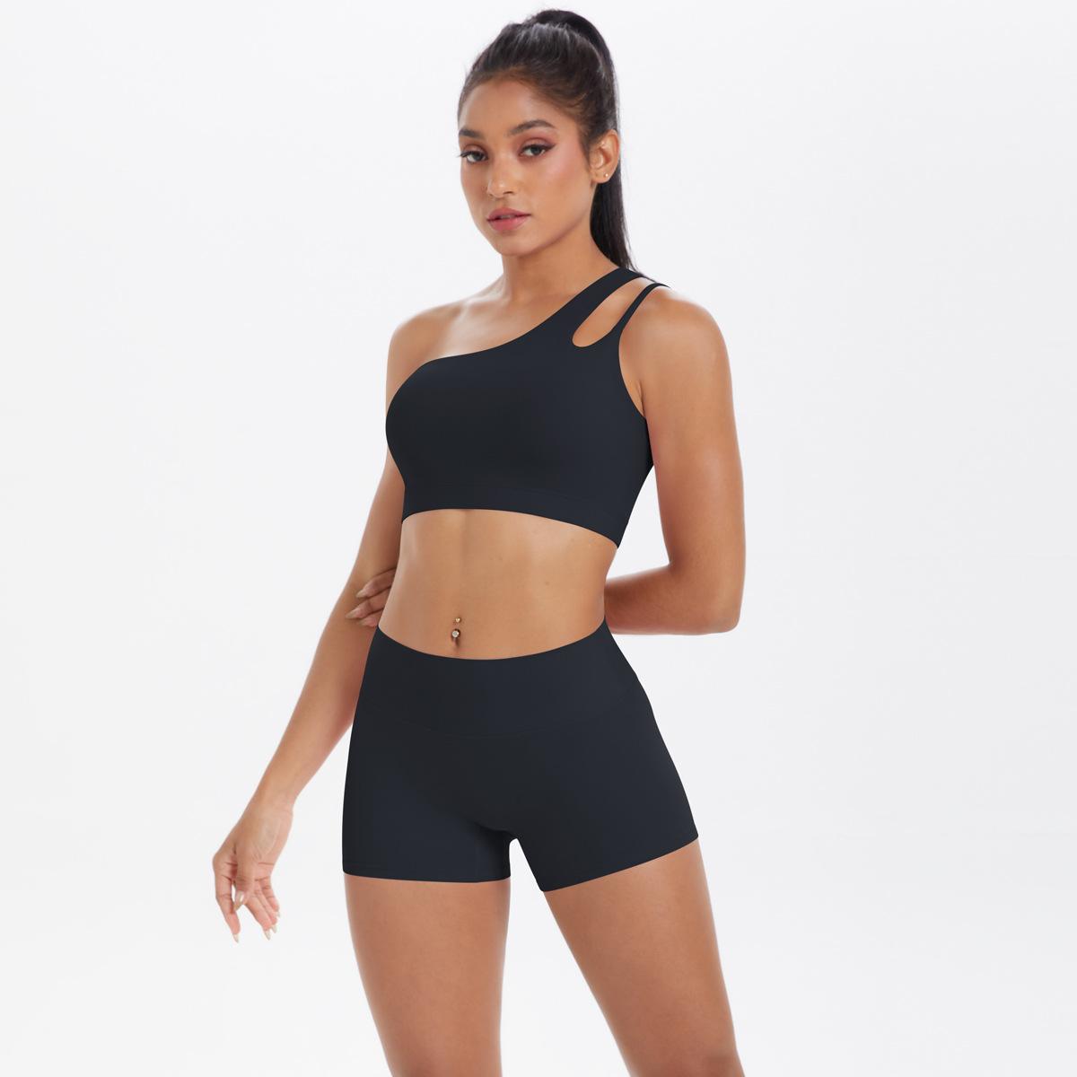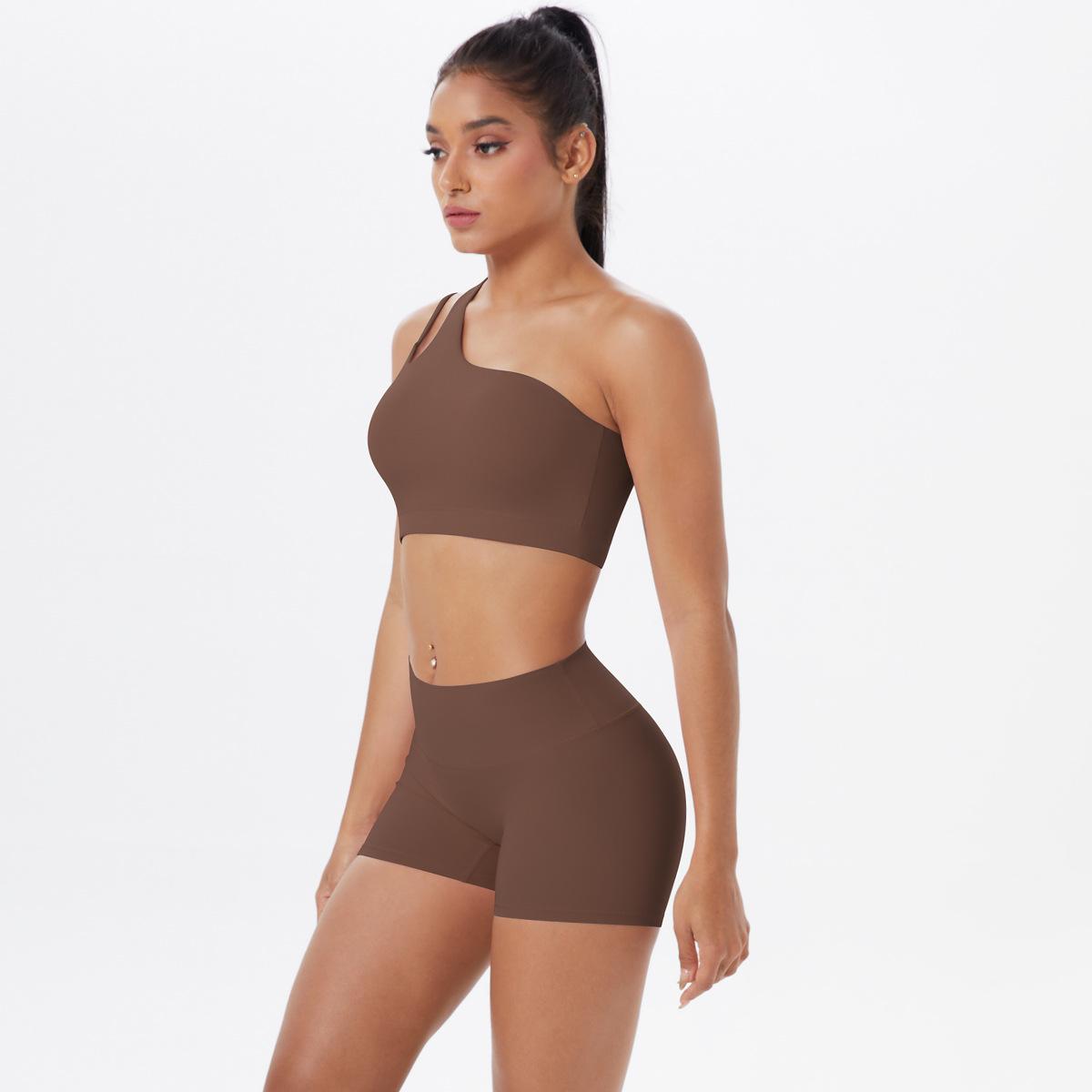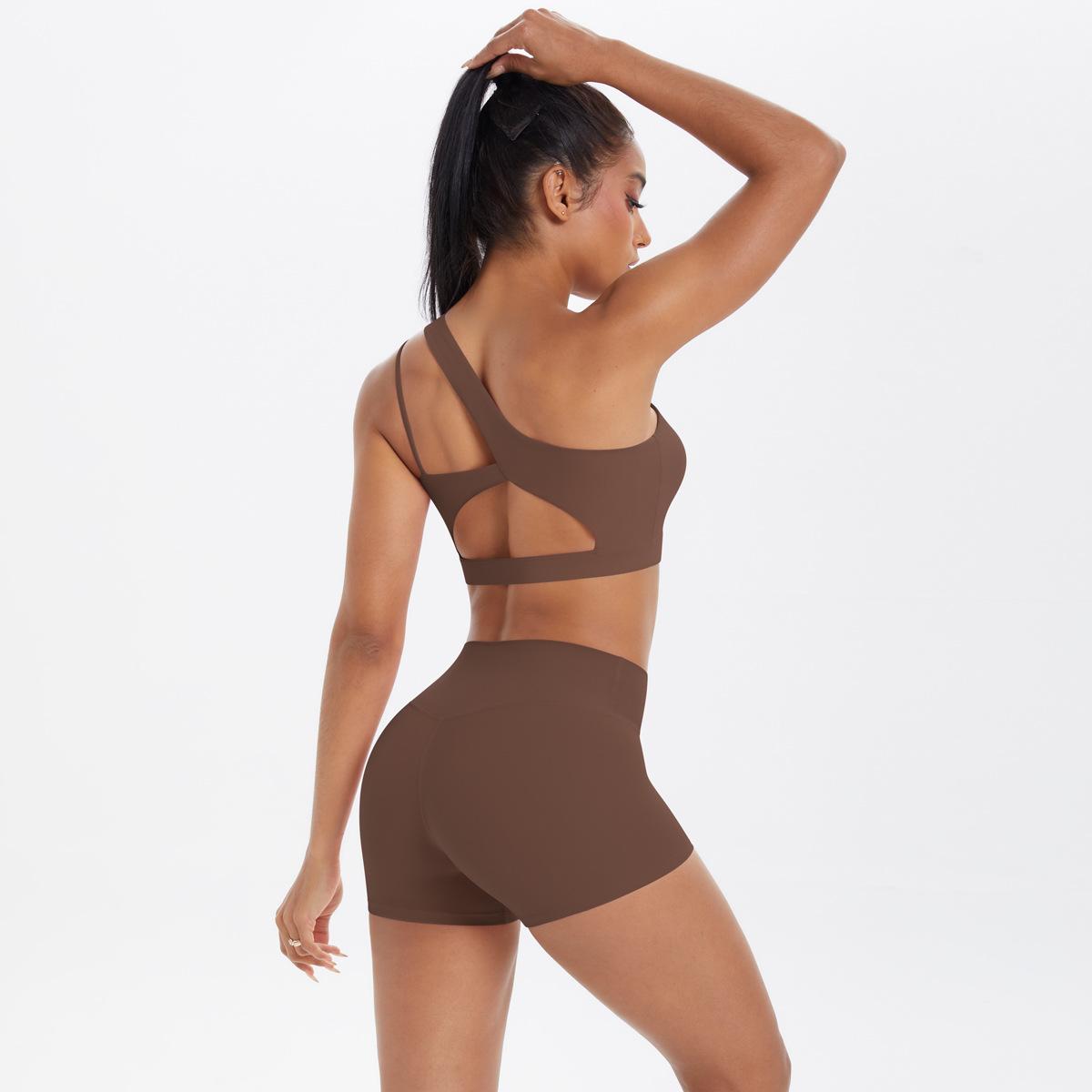 7114 one-shoulder bra + 7101 shorts set - chestnut color, 7114 one-shoulder bra + 7101 shorts set-black, 7114 ...