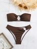 Europeo y Americano 2024 Verano Nuevo Playa Mujer Color Sólido Sexy Tejido Bikini de Playa Traje de Baño Blusa Traje Protector Solar