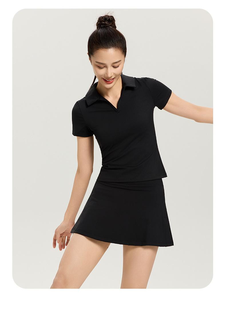 Deportes al Aire Libre Tenis Solapa Polo Deportivo de Manga Corta Abertura Secado Rápido Ropa para Correr Fitness Top Ropa de Yoga para Mujer