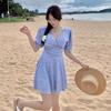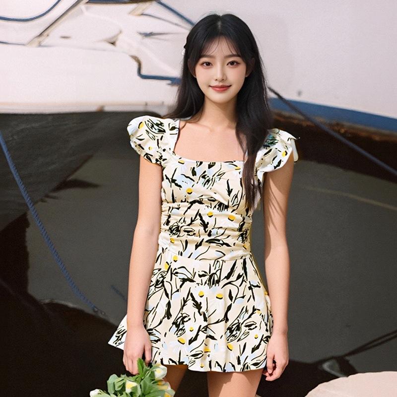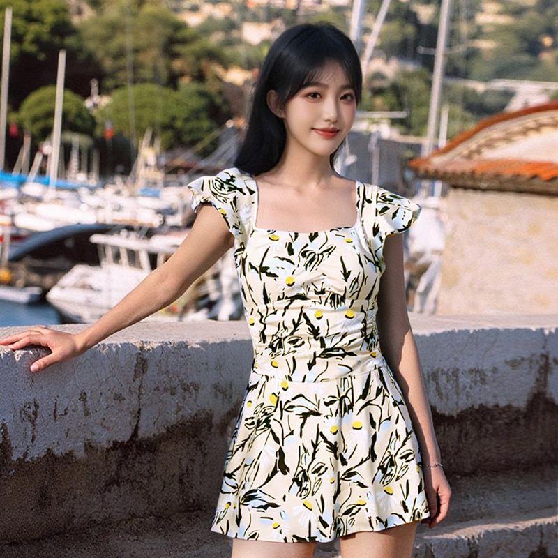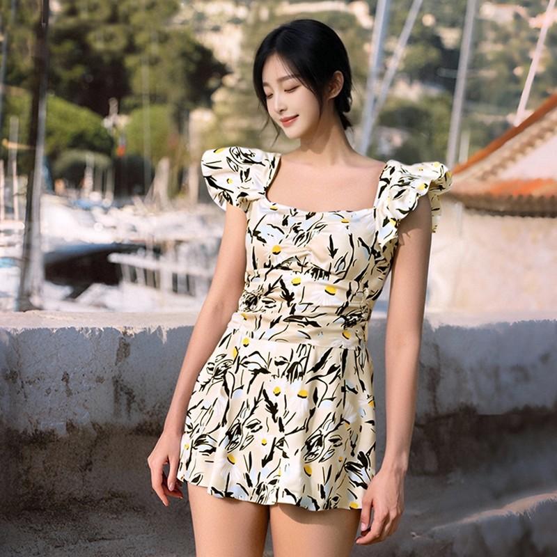 Traje de Baño Nuevo de Verano para Mujer Floral de Gama Alta Conservador Adelgazante de Una Pieza Estilo Falda Vacaciones de Playa Traje de Baño para Aguas Termales al por Mayor