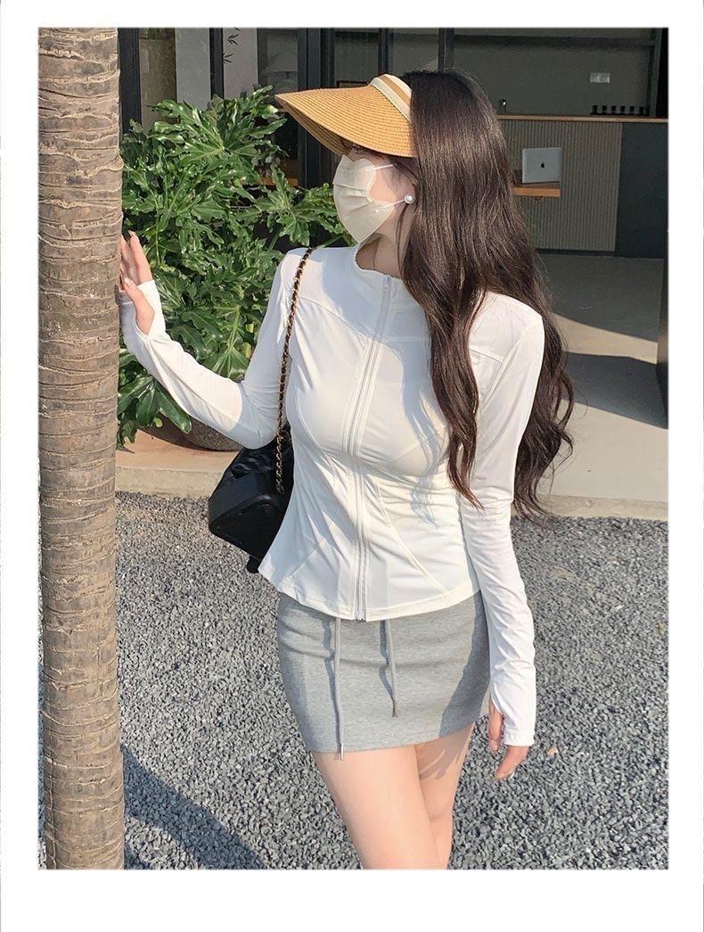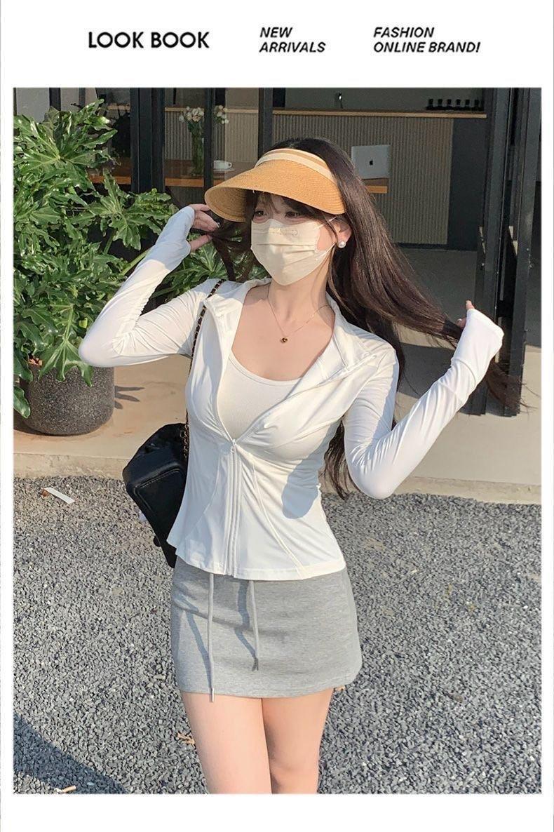 2025 Ropa Slim de Cuello Alto con Protección Solar para Mujer, Chaqueta con Capucha Anti-UV de Verano Nueva, Ropa de Protección Solar Upf50+