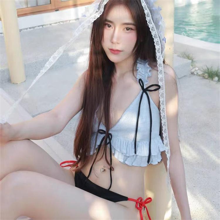 Deseo Puro Chica Reductor de Edad Dulce Chica Caliente Sexy Bikini con Cordones y Lazo Traje de Baño Ropa de Baño para Mujer