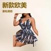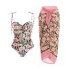 Traje de Baño Entero Nuevo Premade Europeo y Americano de Talla Grande 2025 para Mujeres Gordas, Traje de Baño Moderno y Sexy, Falda Estampada de Malla