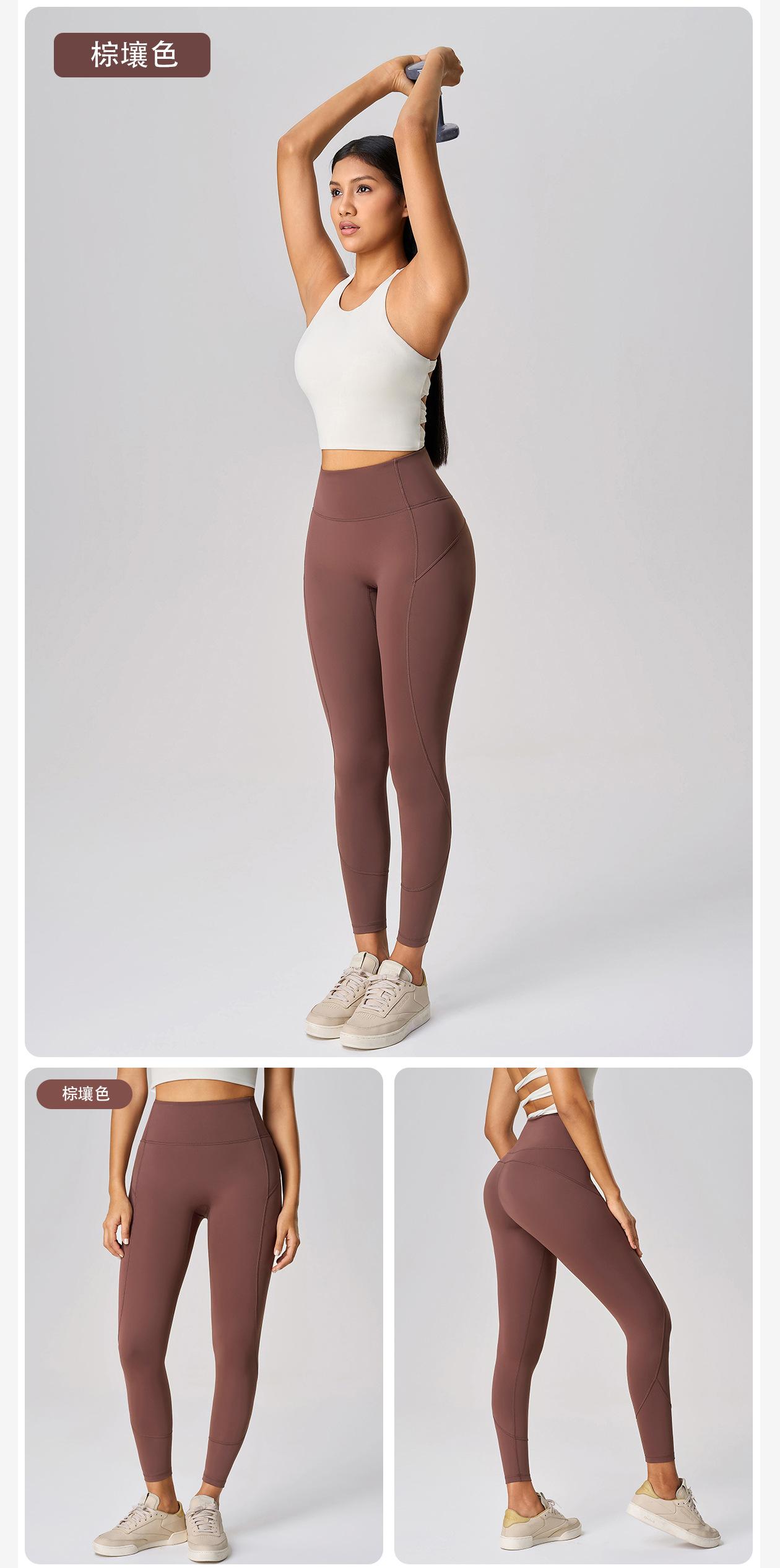 Pantalones de Yoga sin Línea de Vergüenza para Mujer de Cintura Alta Levanta Glúteos Fitness Bolsillo Trasero en la Cintura Pantalones Deportivos Recortados D25081