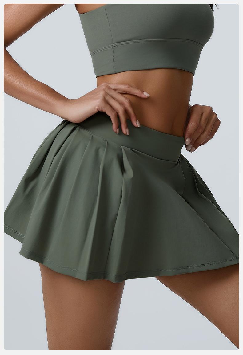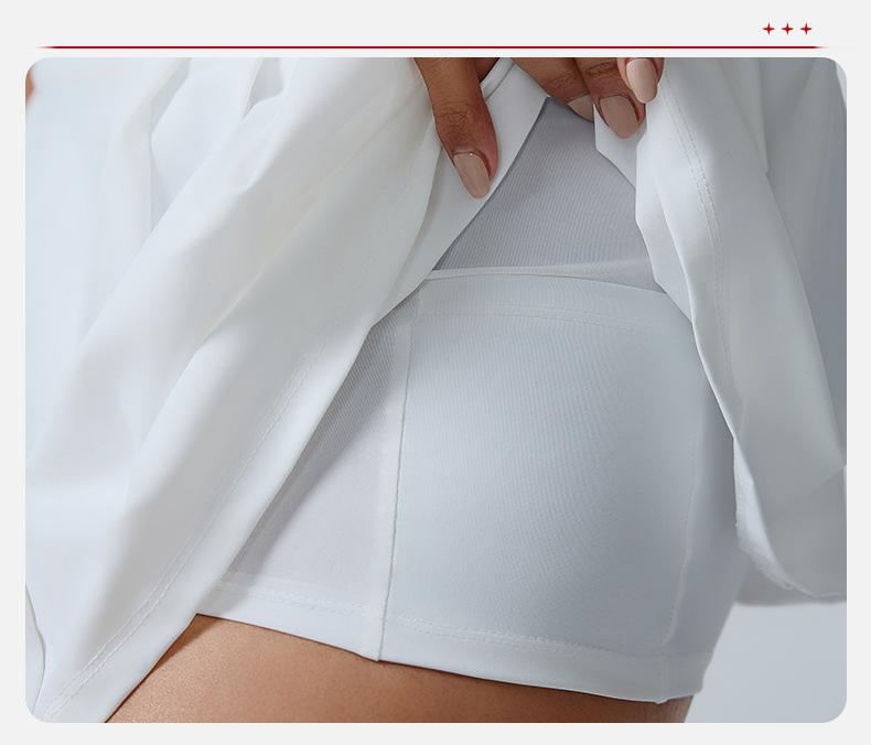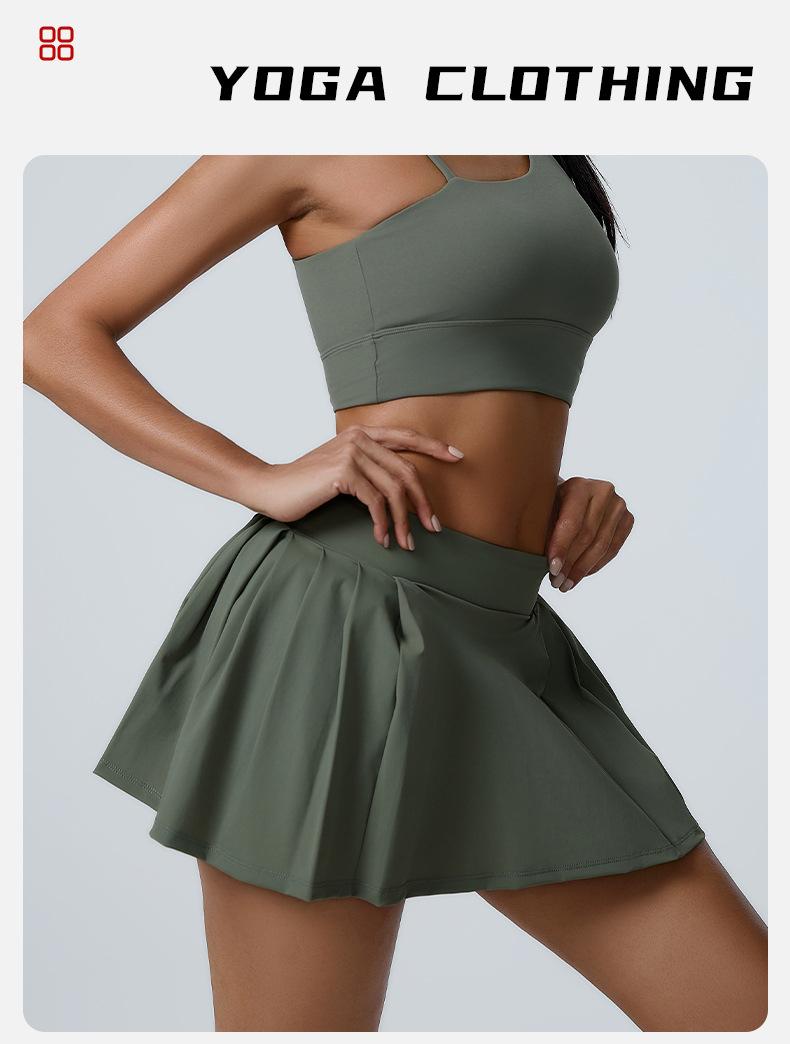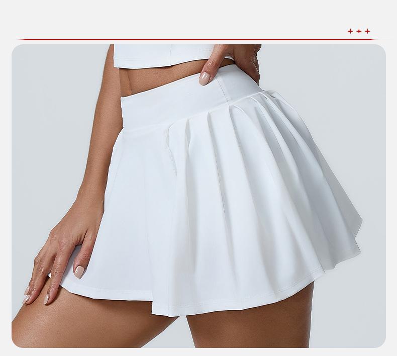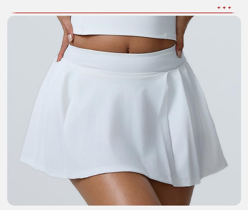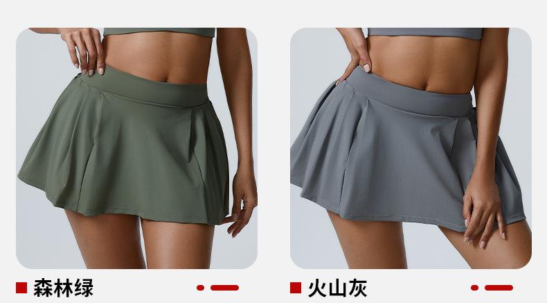 Falda Deportiva Transfronteriza Europea y Americana para Yoga Anti-running Tenis Cintura Alta Secado Rápido Transpirable Falda Fitness para Mujer