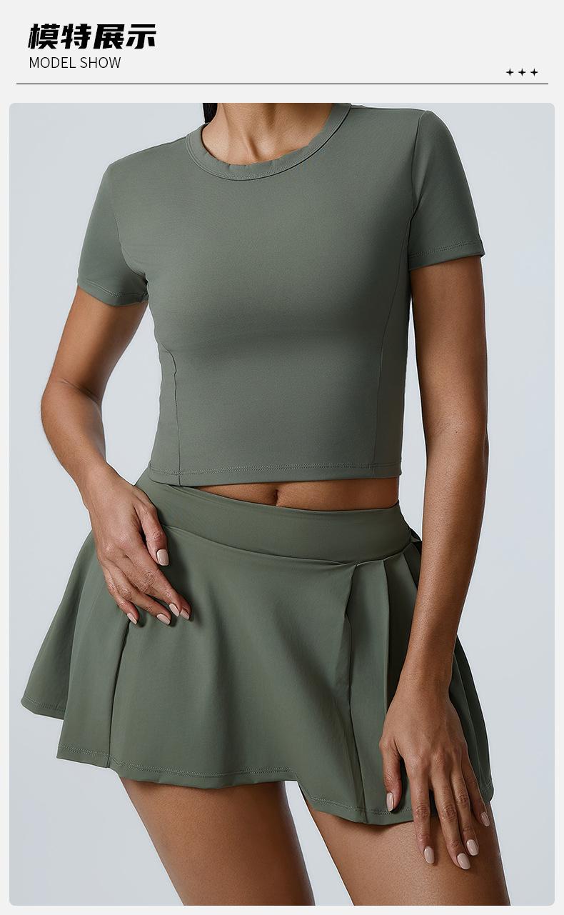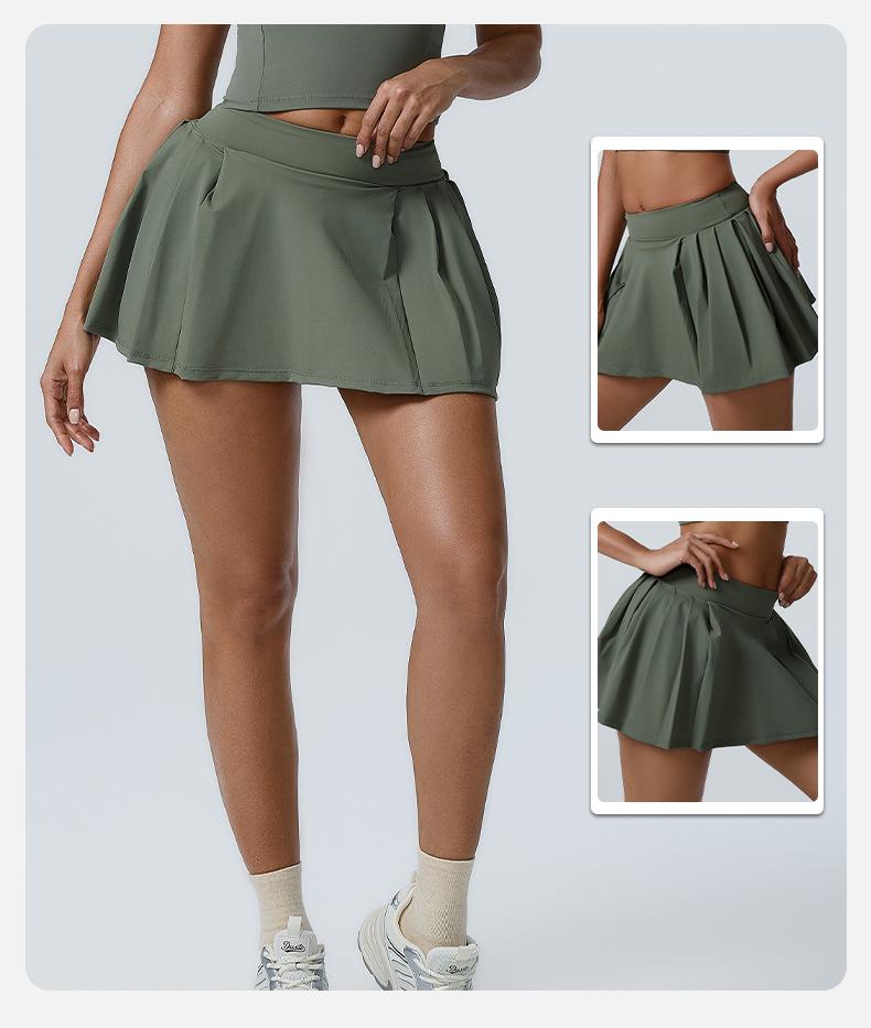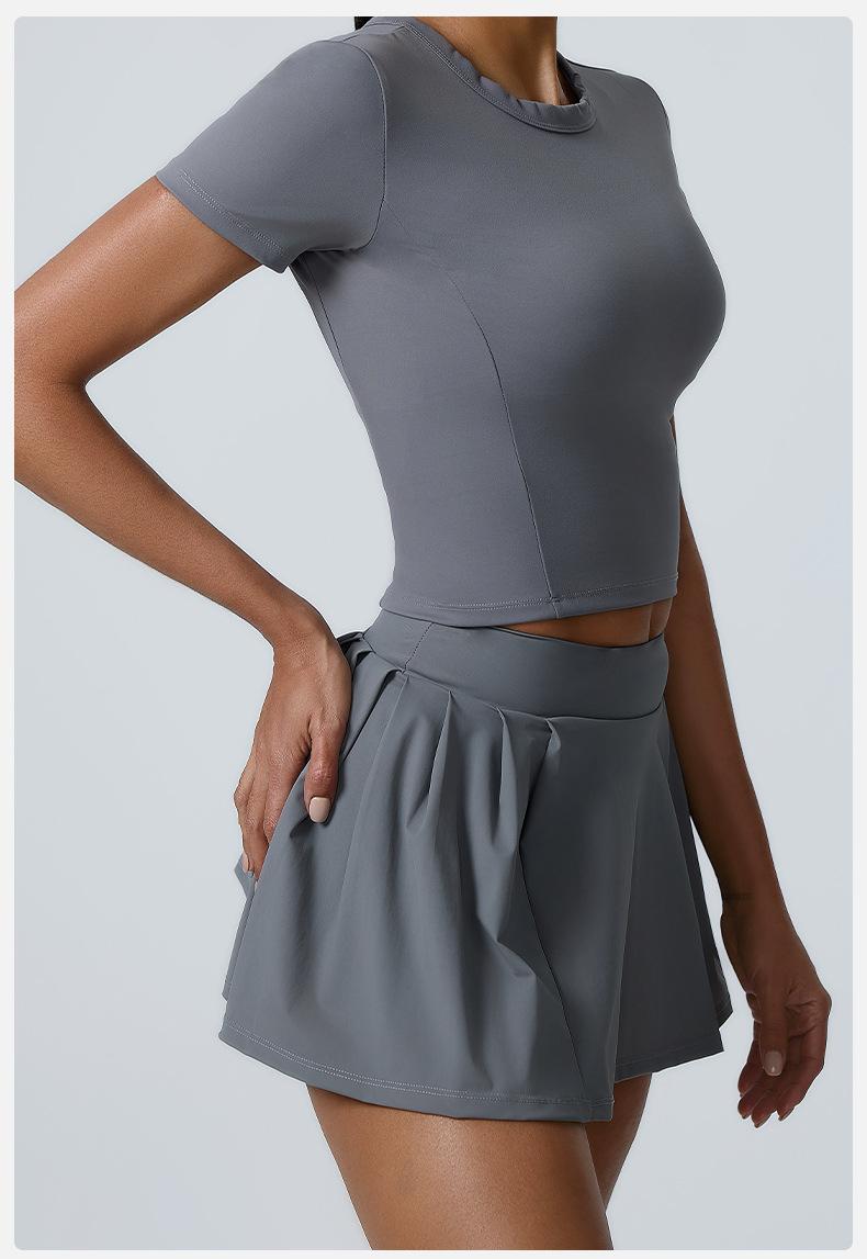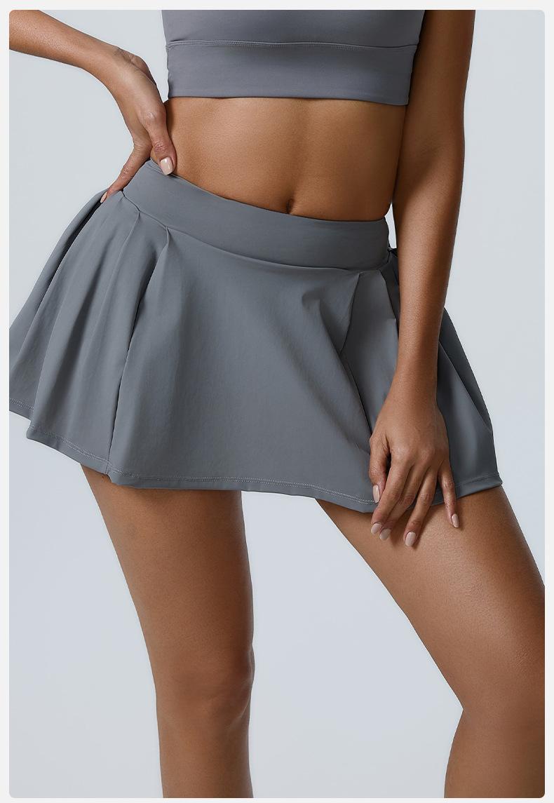 Falda Deportiva Transfronteriza Europea y Americana para Yoga Anti-running Tenis Cintura Alta Secado Rápido Transpirable Falda Fitness para Mujer