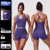 Traje de Yoga Nudo Europeo y Americano Top de Manga Larga Shorts Delgados Ropa de Yoga Fitness Deportes Traje Casual Sskims