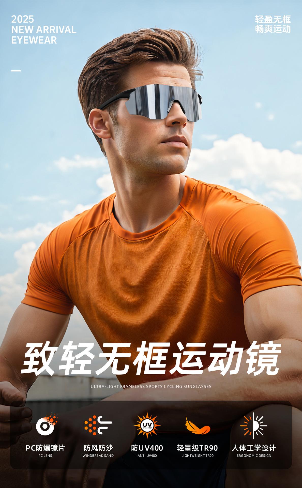 Nuevas Gafas de Sol Deportivas para Correr al Aire Libre sin Montura Europeas y Americanas Transfronterizas Montañismo Bicicleta Parasol Protección Ocular Gafas de Ciclismo