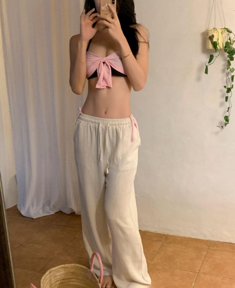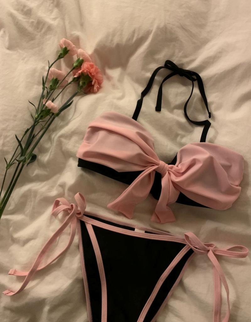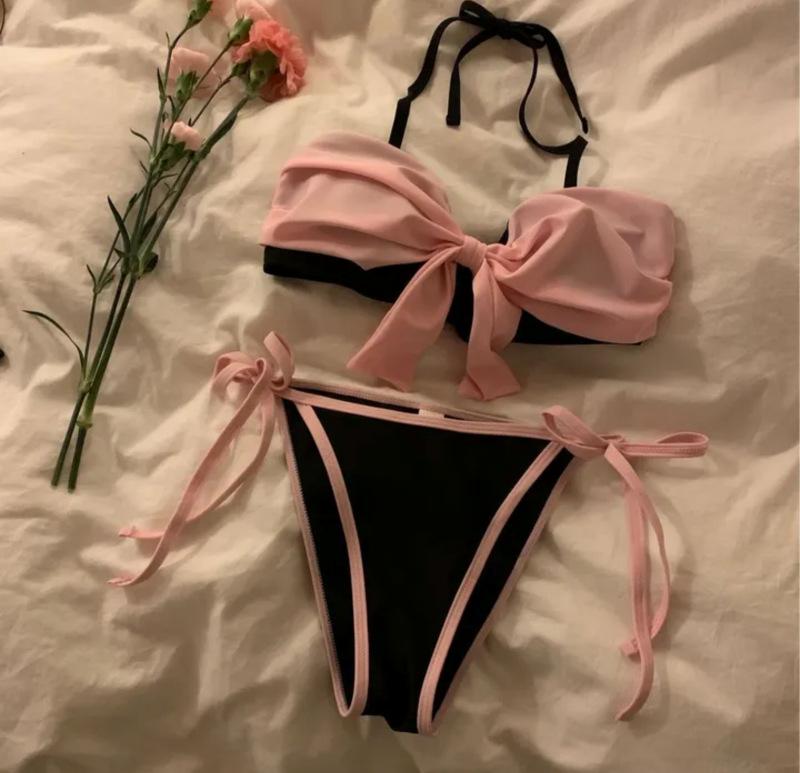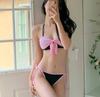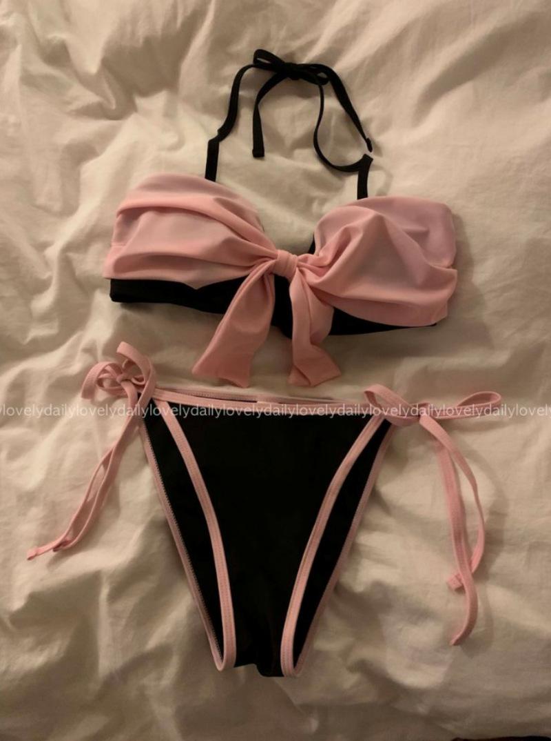 Bikini Bikini2025 Nuevo Traje de Baño Femenino Niña Pecho Pequeño Lazo Sexy Sexy Traje de Baño Venta al por Mayor