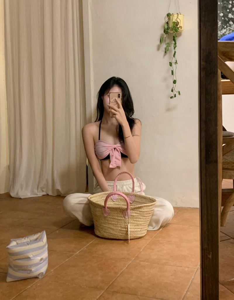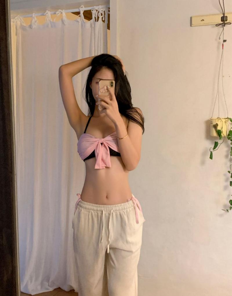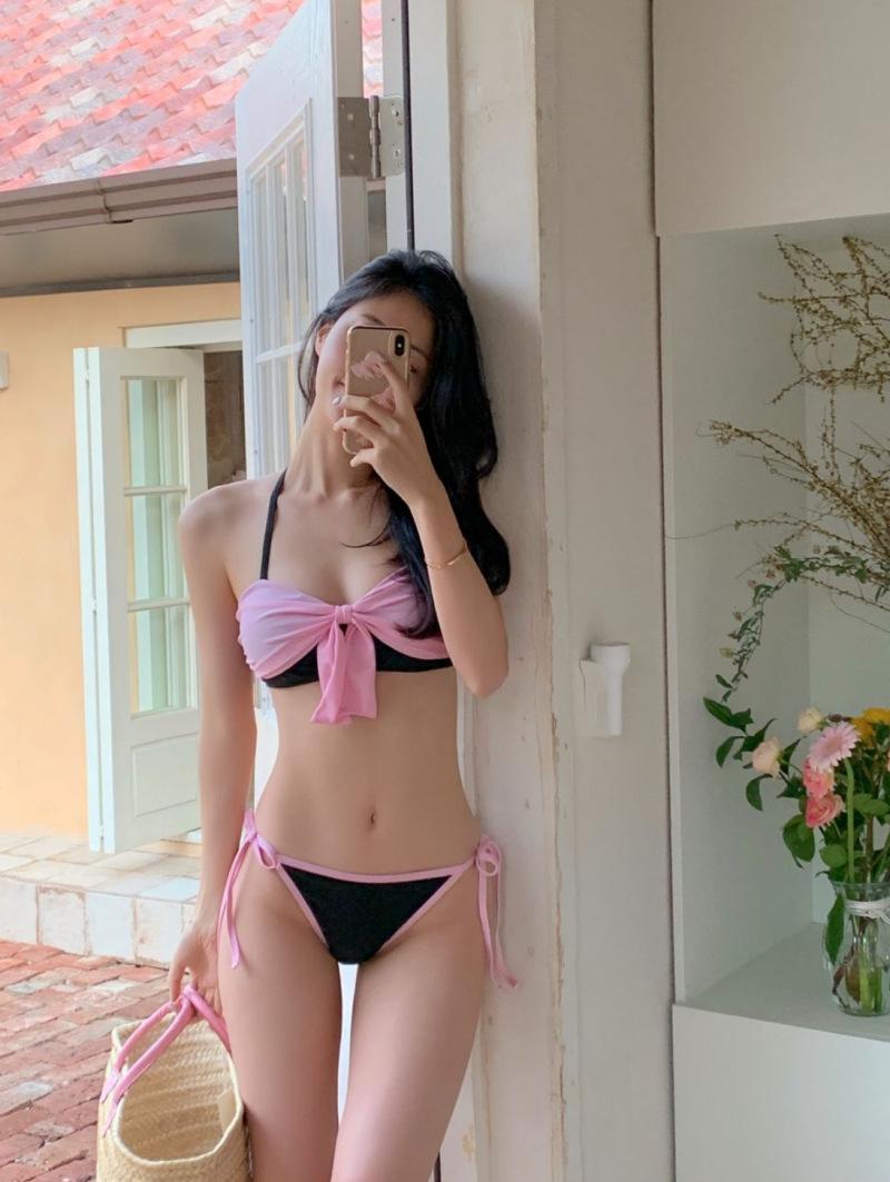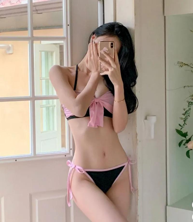 Bikini Bikini2025 Nuevo Traje de Baño Femenino Niña Pecho Pequeño Lazo Sexy Sexy Traje de Baño Venta al por Mayor