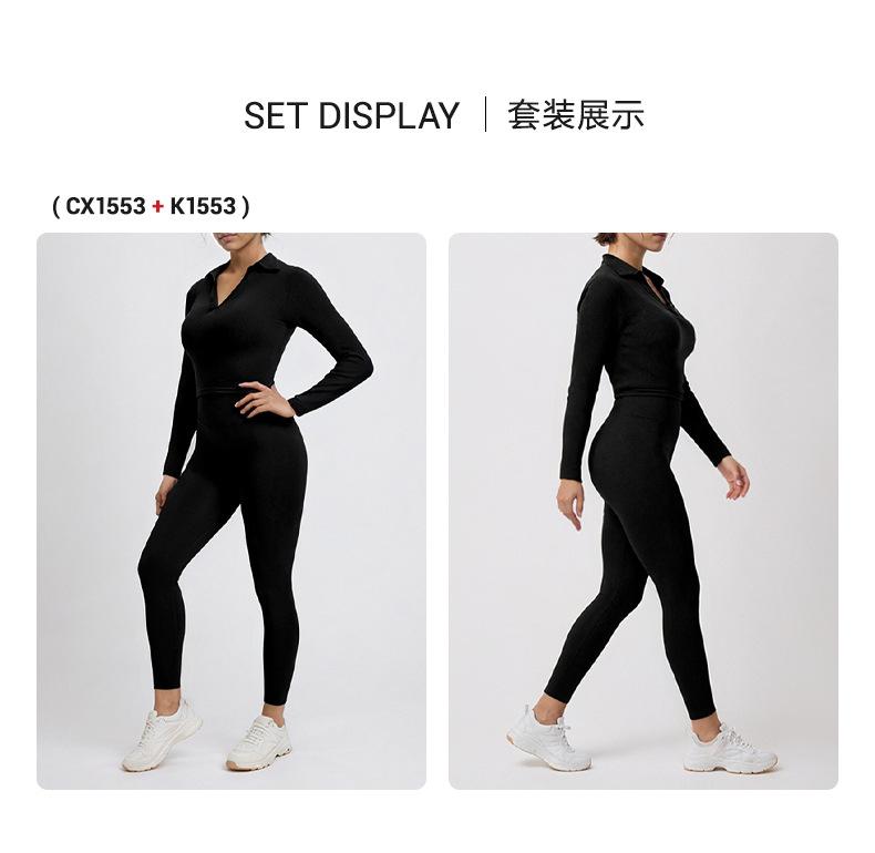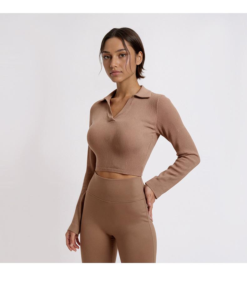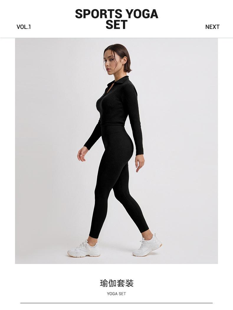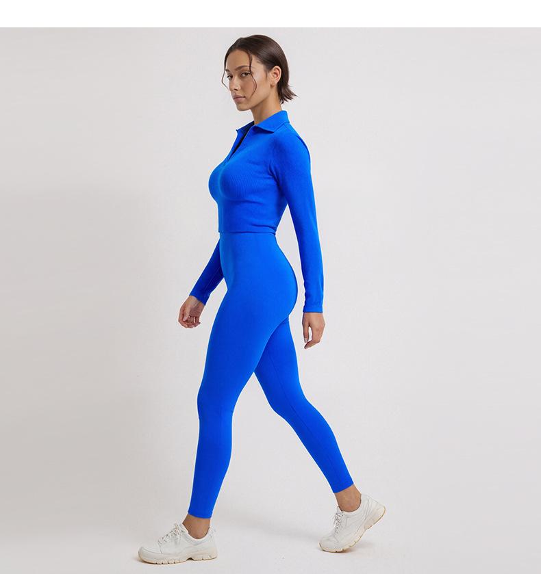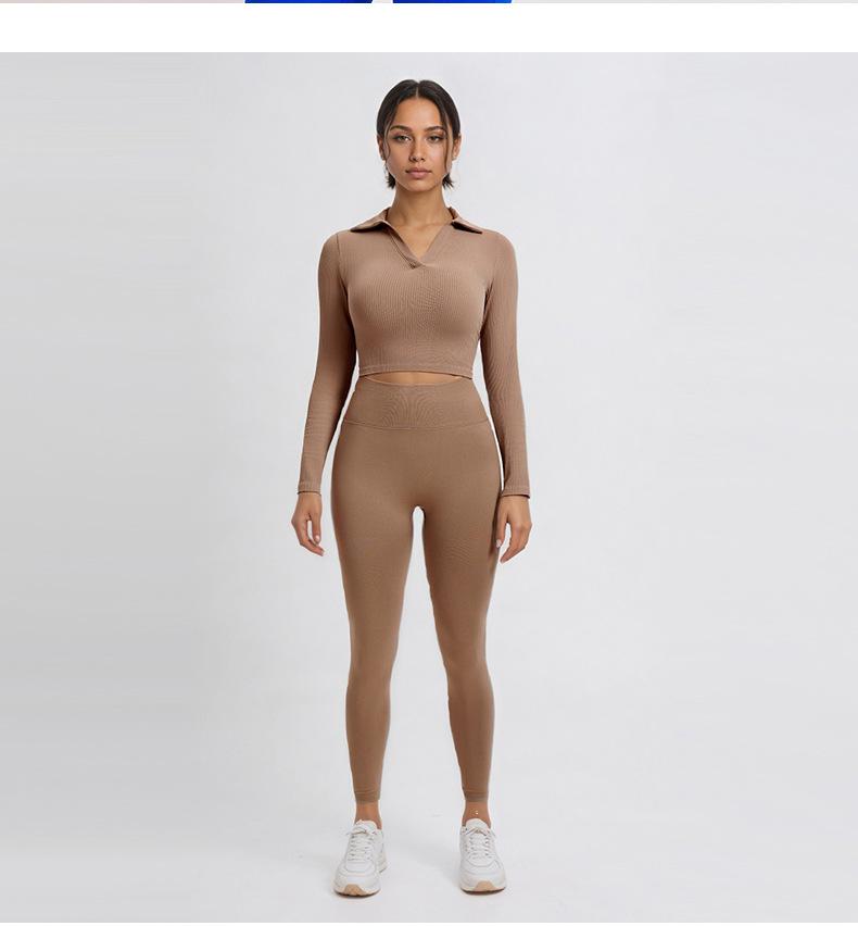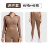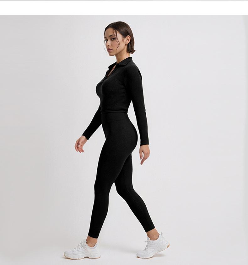 Conjunto de Ropa Deportiva Sin Costuras Estilo Europeo y Americano para Mujer, Top de Solapa de Manga Larga, Leggings Ajustados Piel de Durazno, Conjunto de Ropa para Correr, Fitness, Yoga