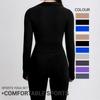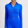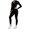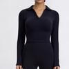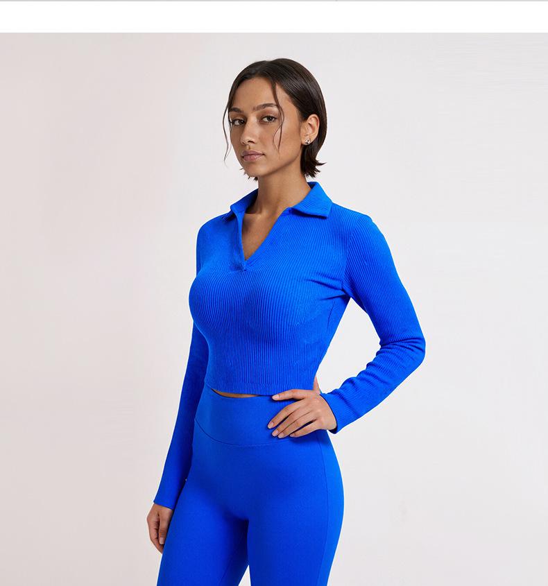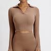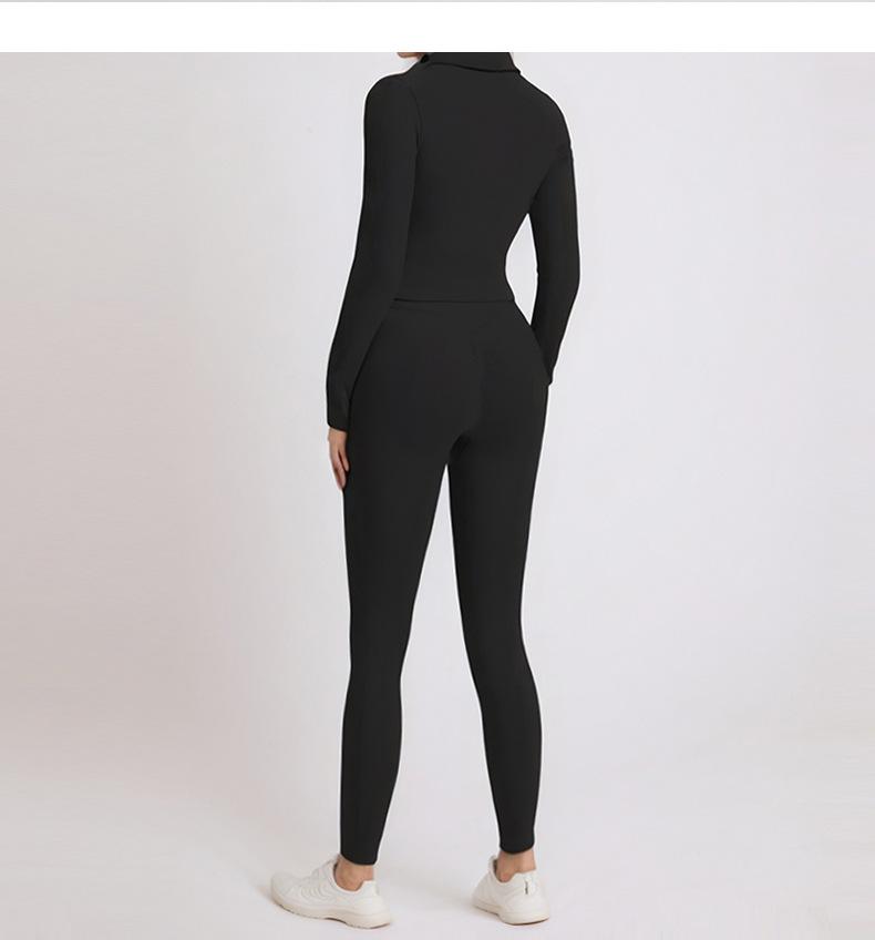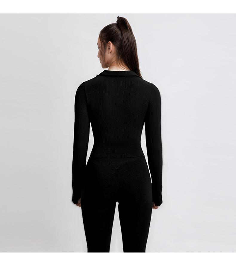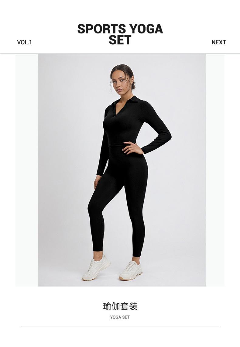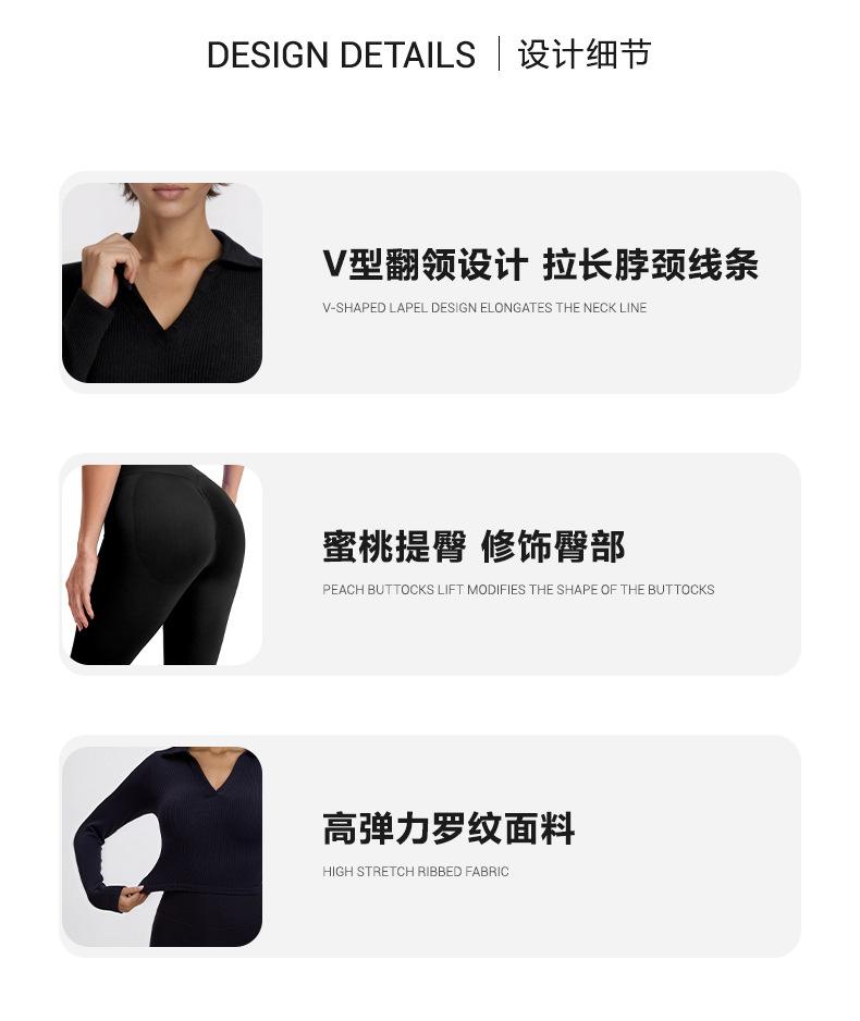 Conjunto de Ropa Deportiva Sin Costuras Estilo Europeo y Americano para Mujer, Top de Solapa de Manga Larga, Leggings Ajustados Piel de Durazno, Conjunto de Ropa para Correr, Fitness, Yoga