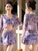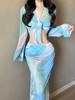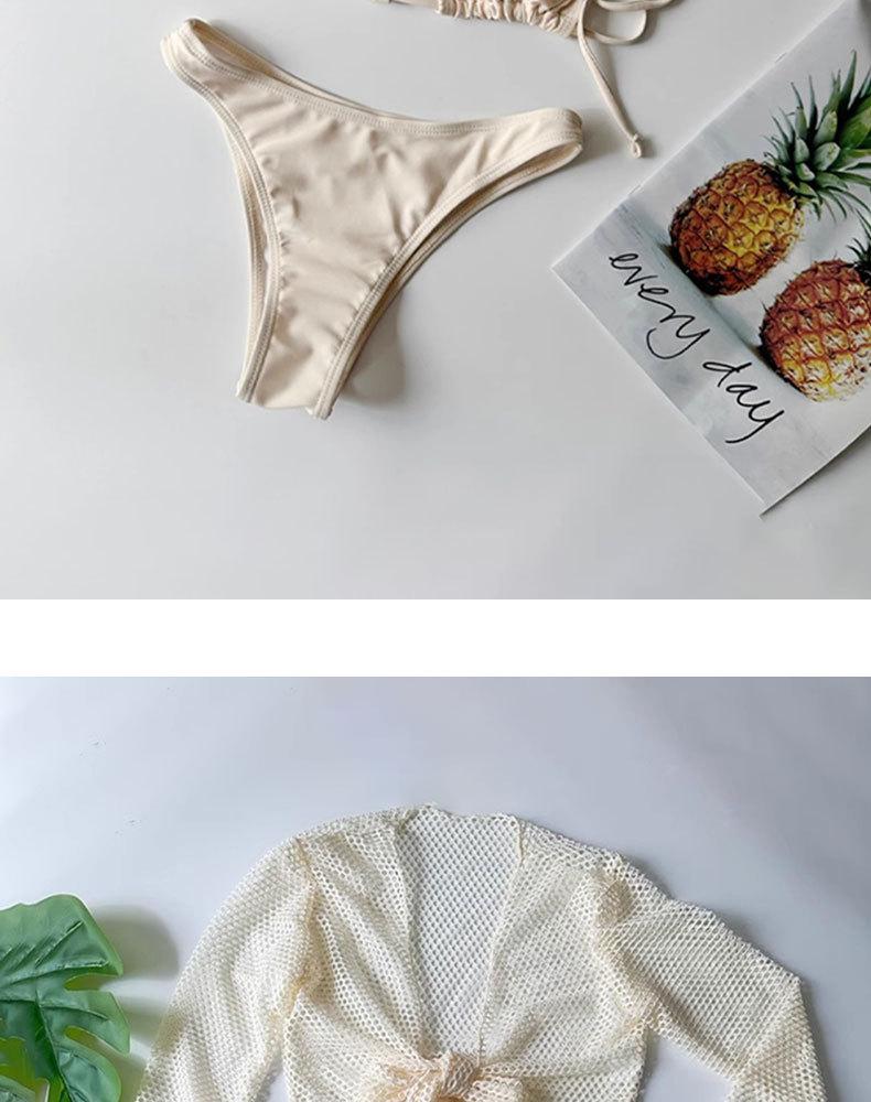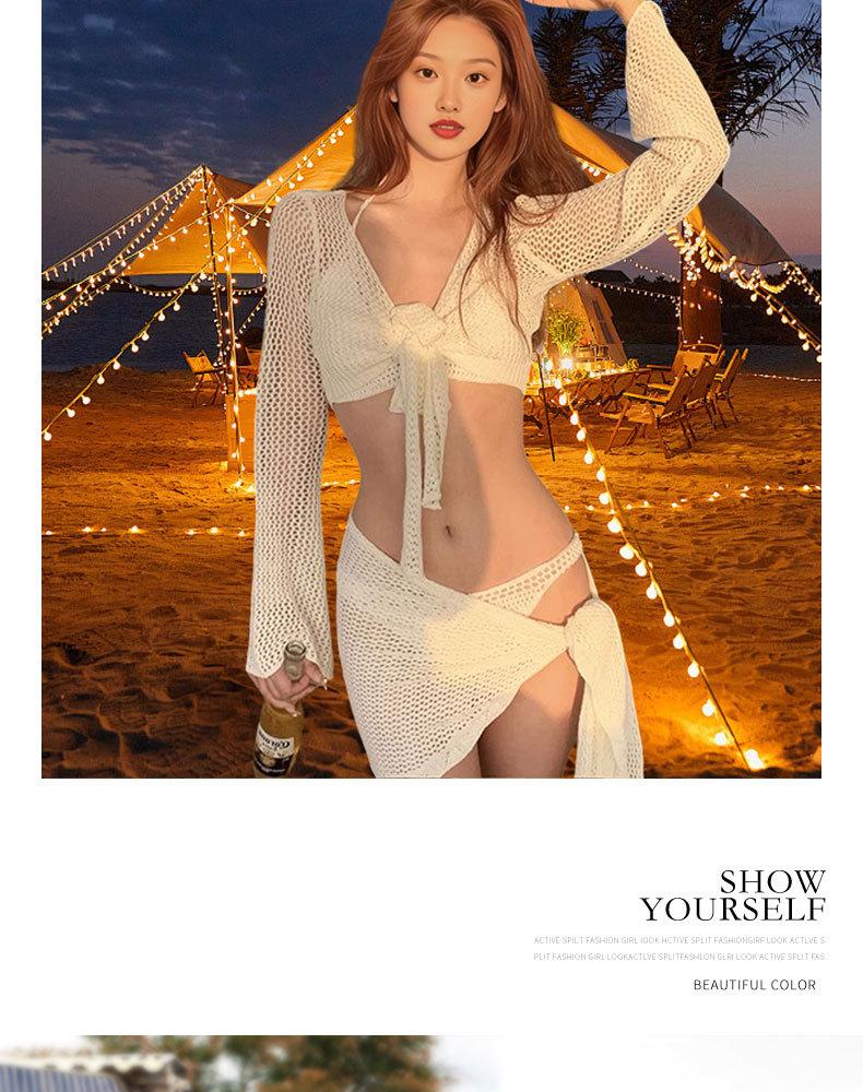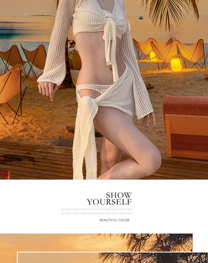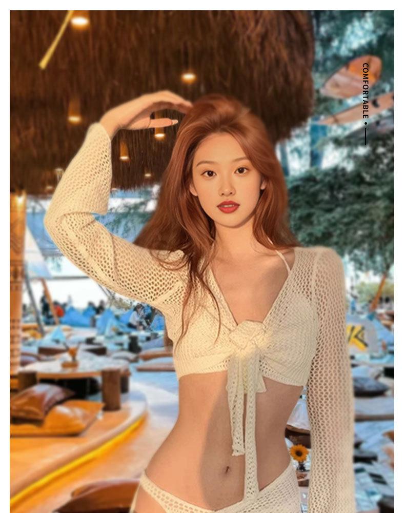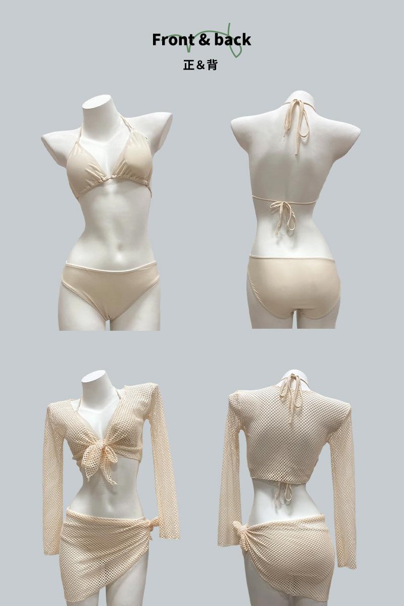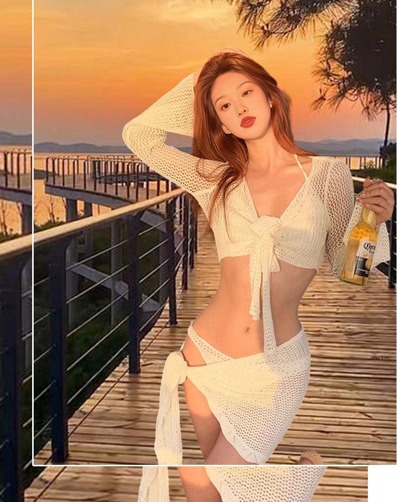 2025 Nuevo Sexy Sexy Bikini Dividido Cuatro Piezas Blusa de Manga Larga Vacaciones de Playa Traje de Baño para Mujer