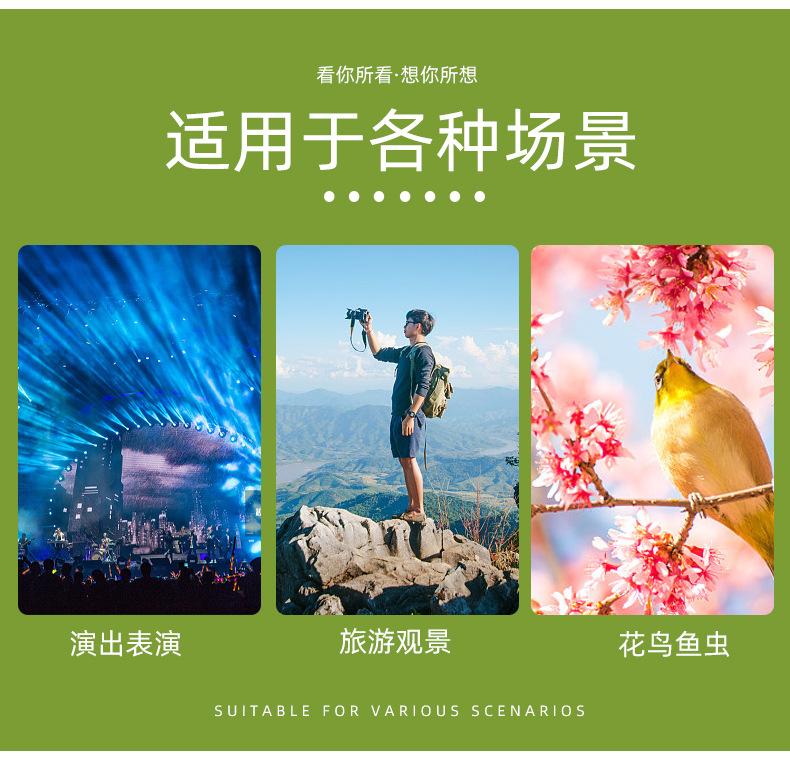 Diámetro del ocular: 26MM (ocular súper grande, la cámara puede tomar fotos directamente detrás de él, y el paisaje distante también se puede guardar en su cámara a corta distancia)
