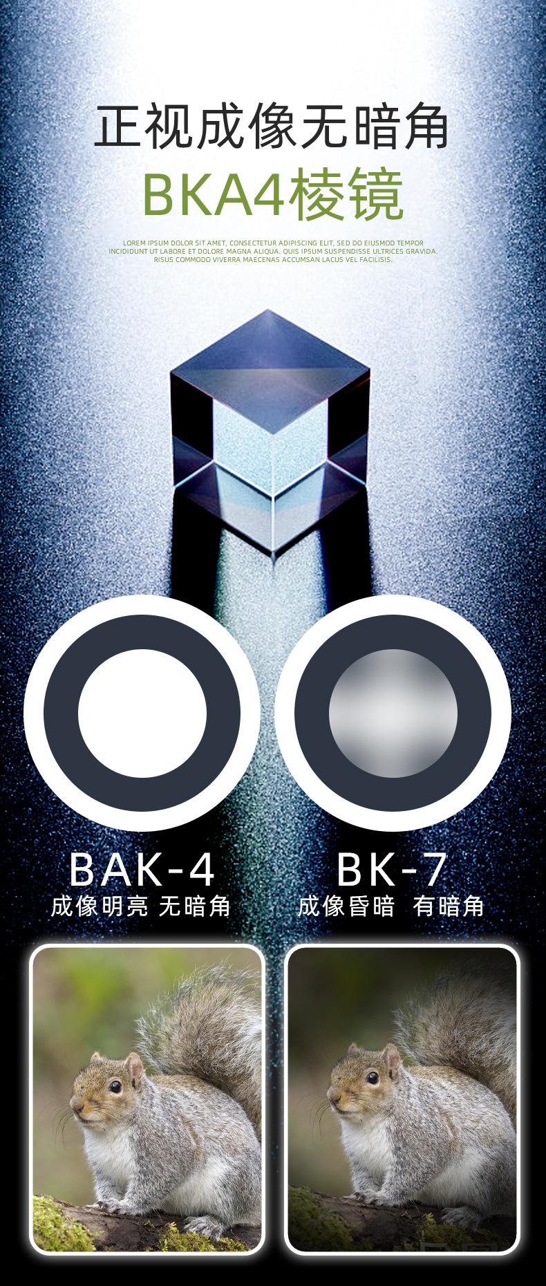 Componentes ópticos: Todos utilizan oculares de vidrio BAK4 y las lentes del objetivo están recubiertas con 12 capas de película antirreflejo compuesta (película verde). ¡Alta luminosidad y reproducción cromática excepcional!