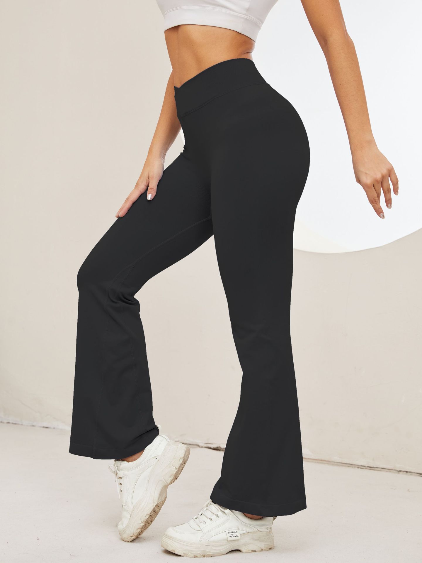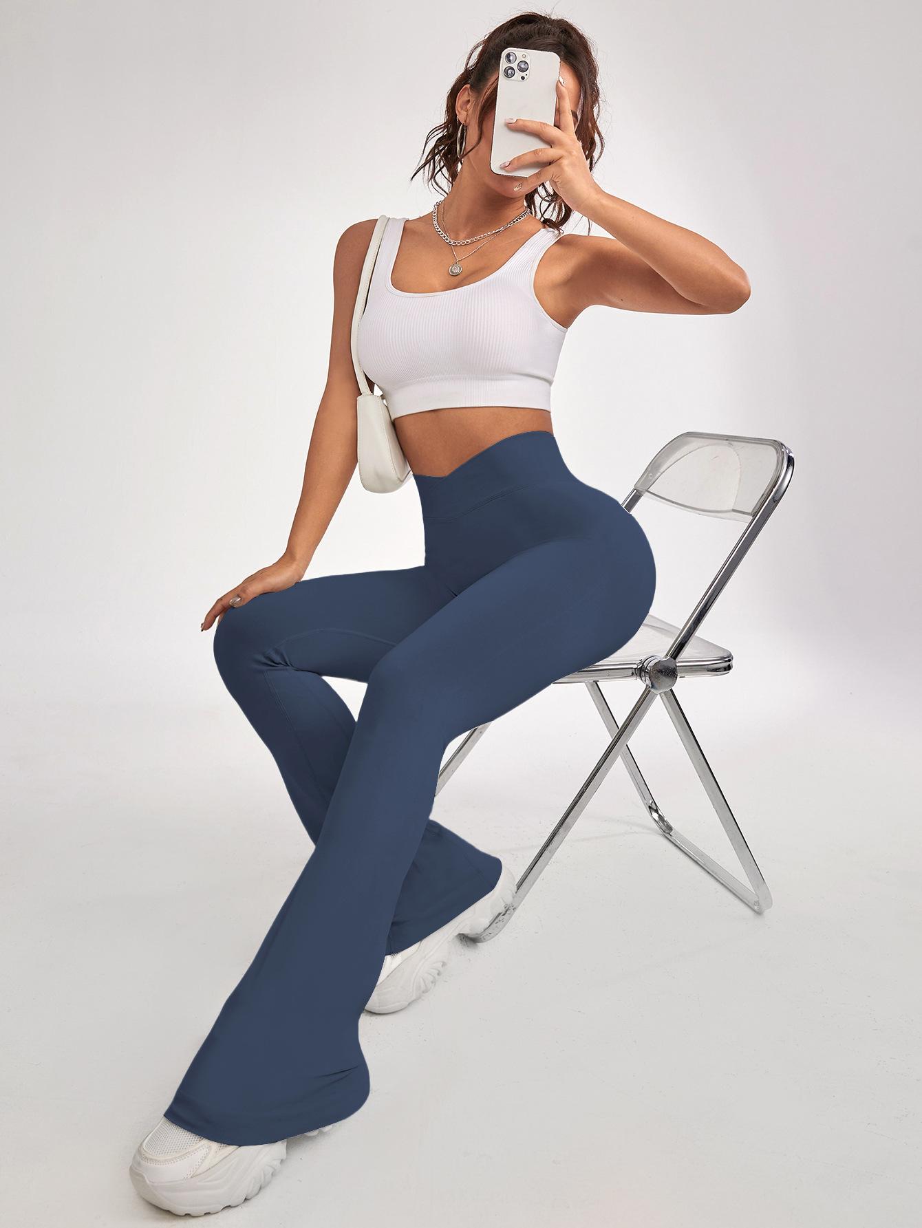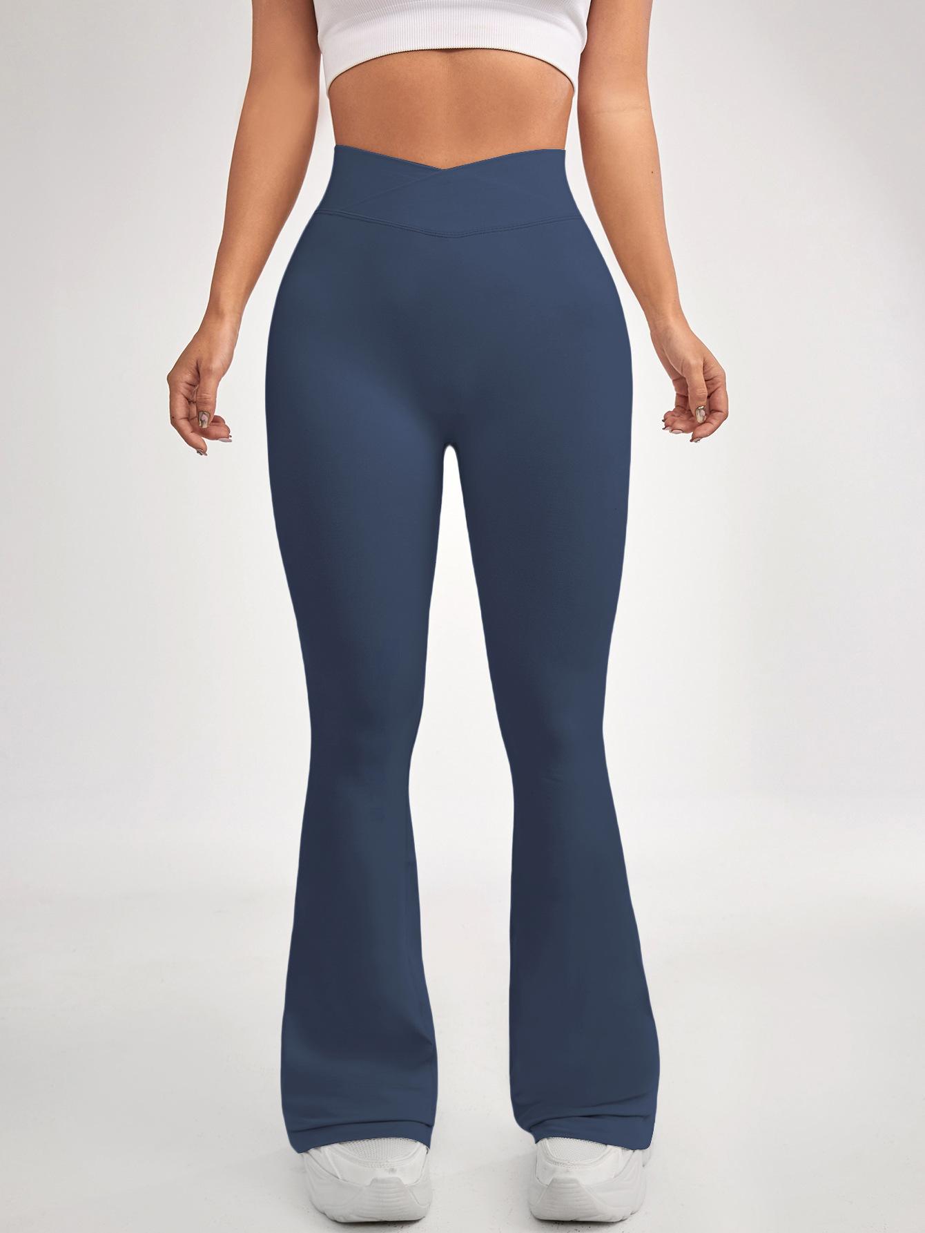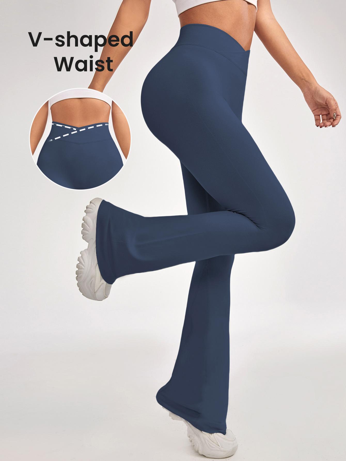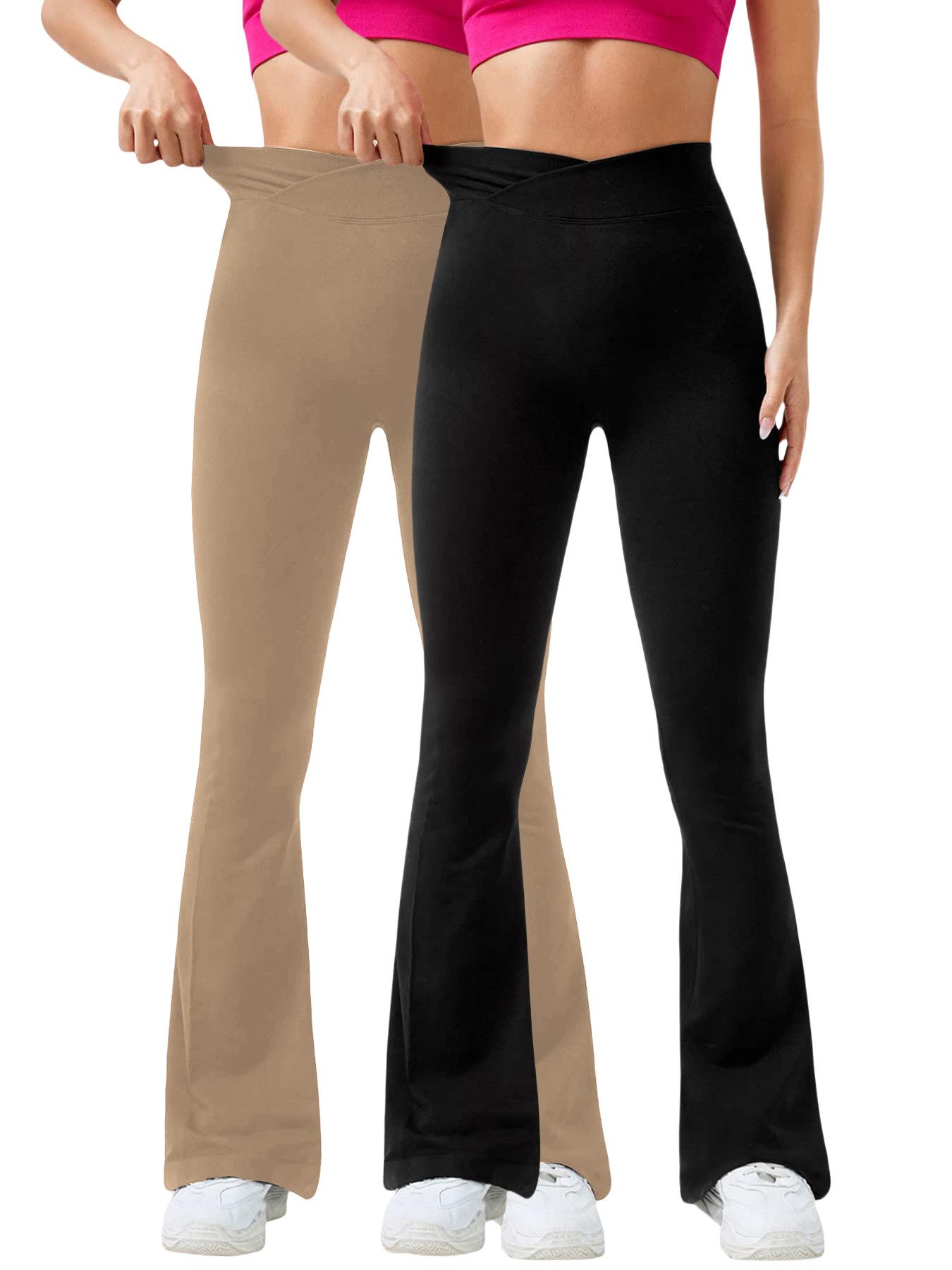 Pantalones Acampanados de Yoga Sin Costuras Europeos y Americanos para Mujer, Cintura Cruzada, Control de Abdomen, Levanta Glúteos, Fitness, Secado Rápido, Correr, Deportes, Pantalones de Yoga