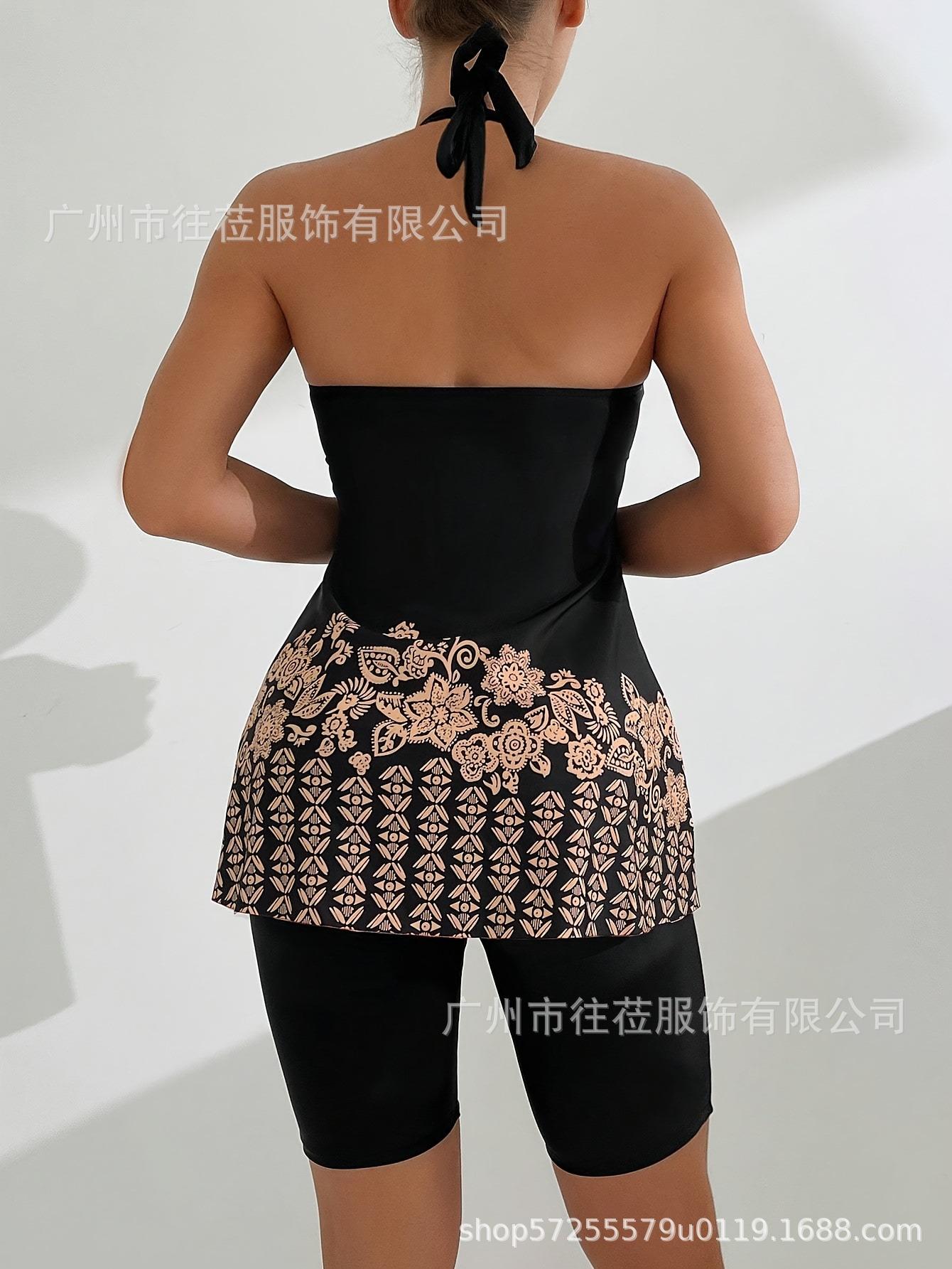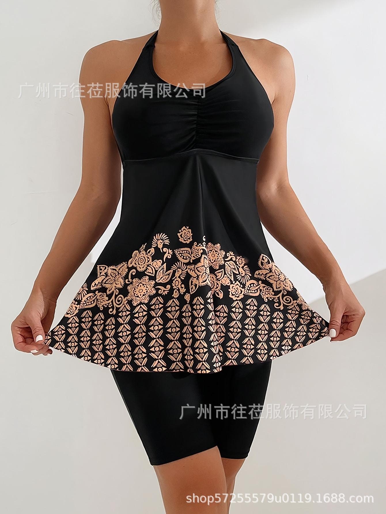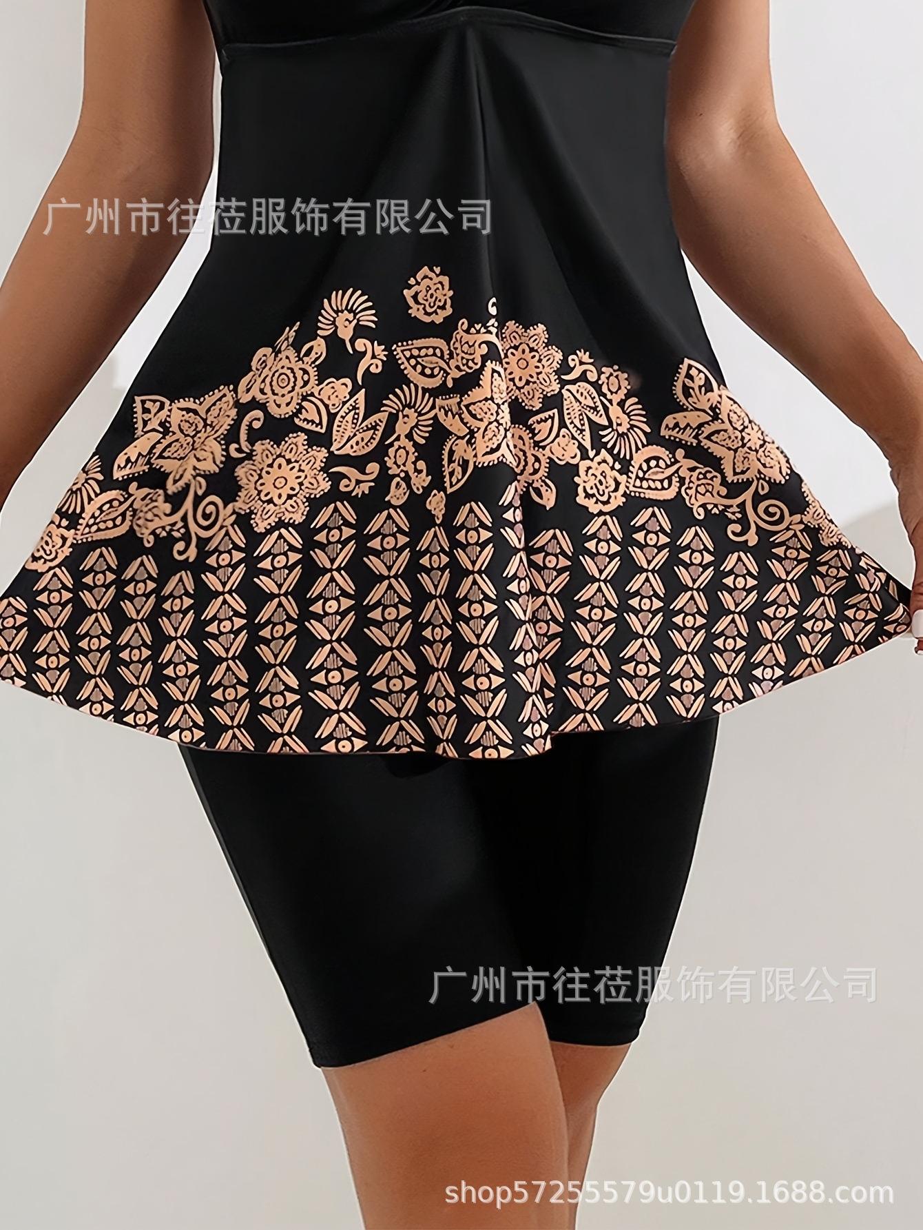 Nuevo Vestido Chaleco Estampado Liso Estilo Vacaciones Playa Natación Conservador Protección Solar Traje de Baño Tankini Dividido Conjunto de Dos Piezas