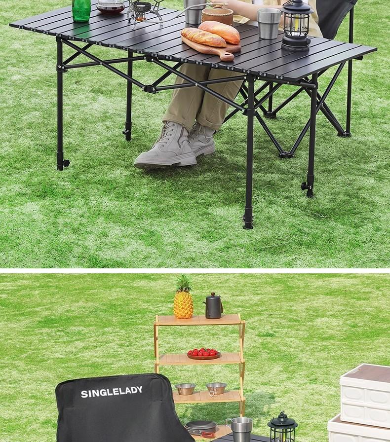 Mesa Plegable para Exterior Portátil Ajustable en Altura Mesa de Picnic y Sillas Mesa y Sillas para Camping Mesa Enrollable para Barbacoa Equipo para Exterior