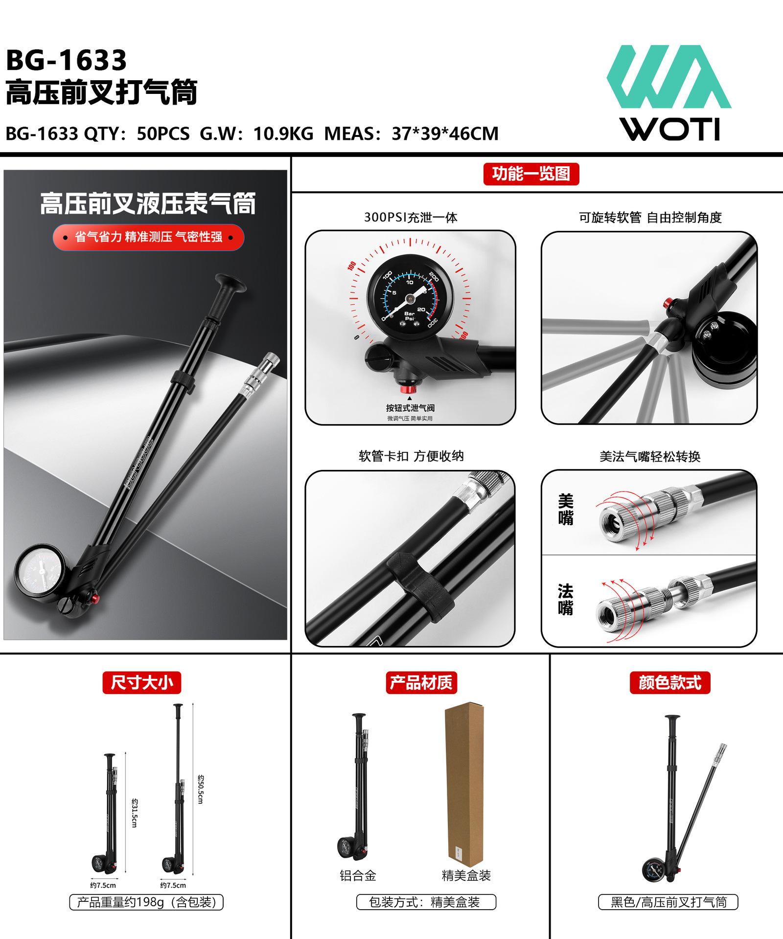 Horquilla delantera de alta presión para bicicleta transfronteriza, suspensión, manómetro hidráulico, cilindro de aire, boca americana, bomba para horquilla delantera, bomba para bicicleta de carretera