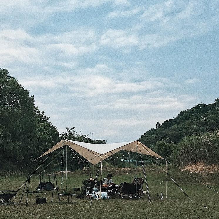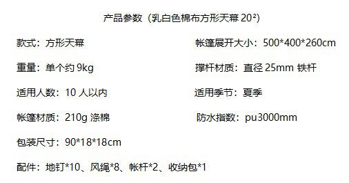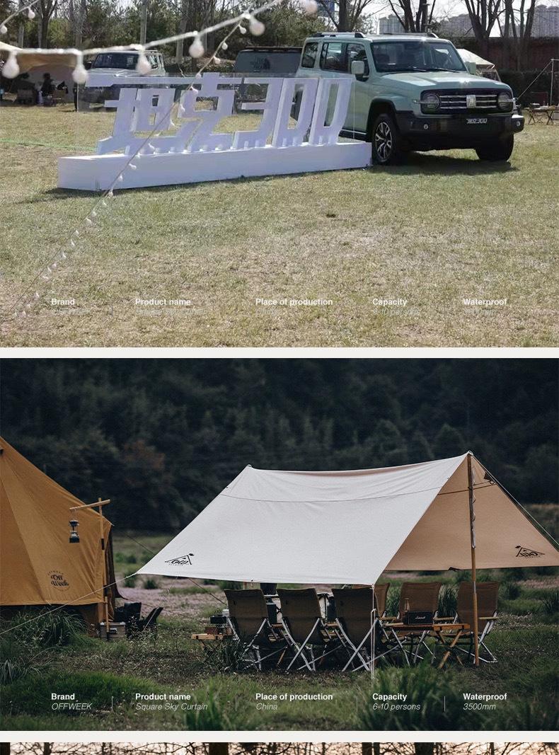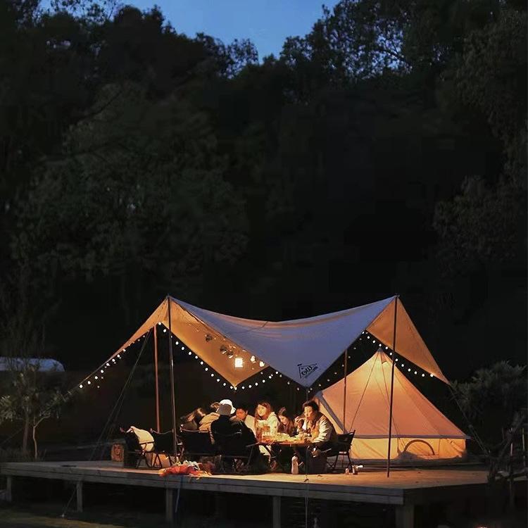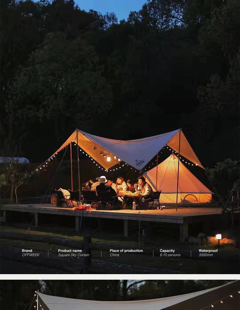 Toldo de Algodón Retro con Forma Cuadrada para Exterior, Sombrilla para Verano Estilo Camping, Impermeable, Construcción para Viajes