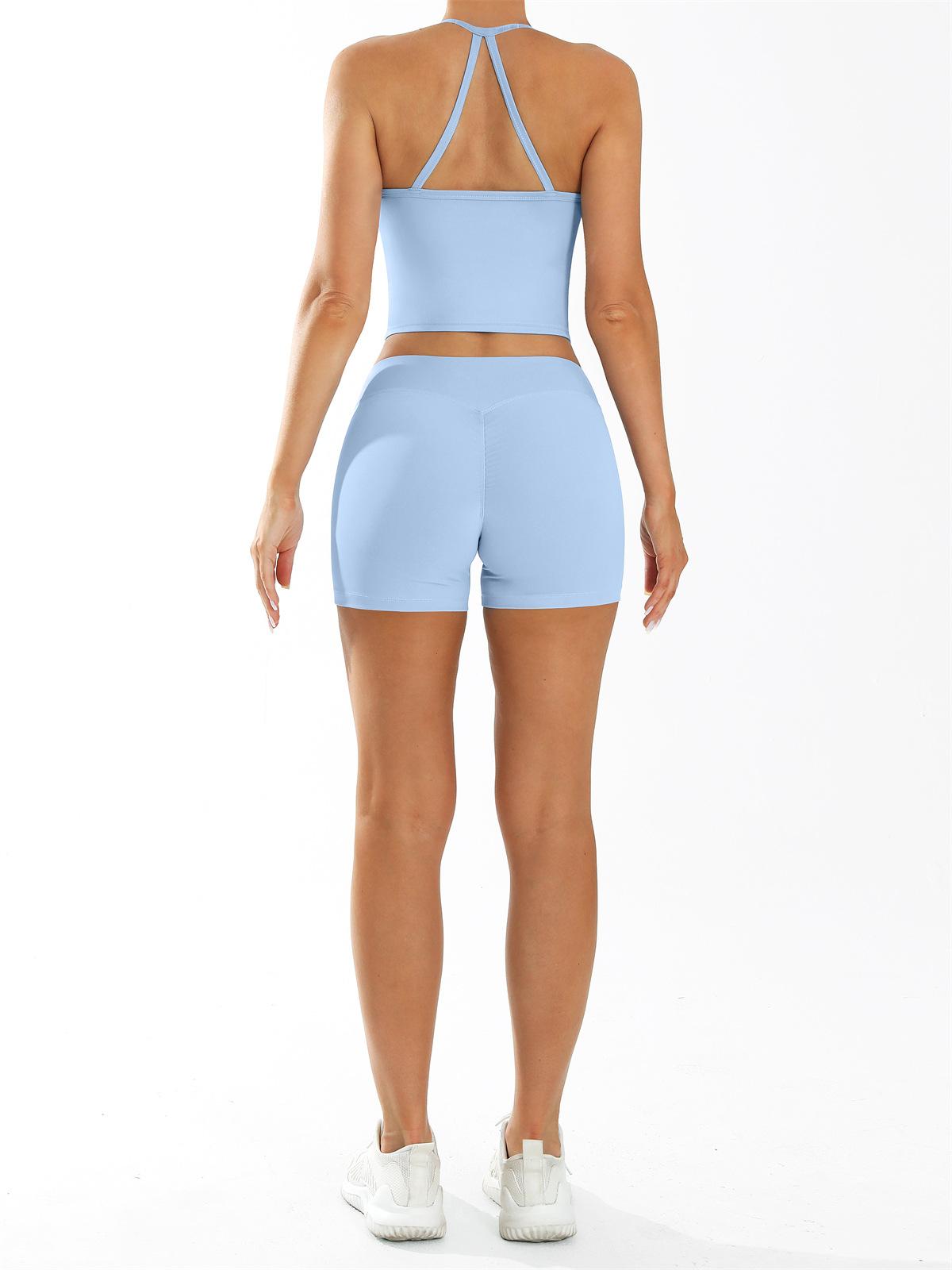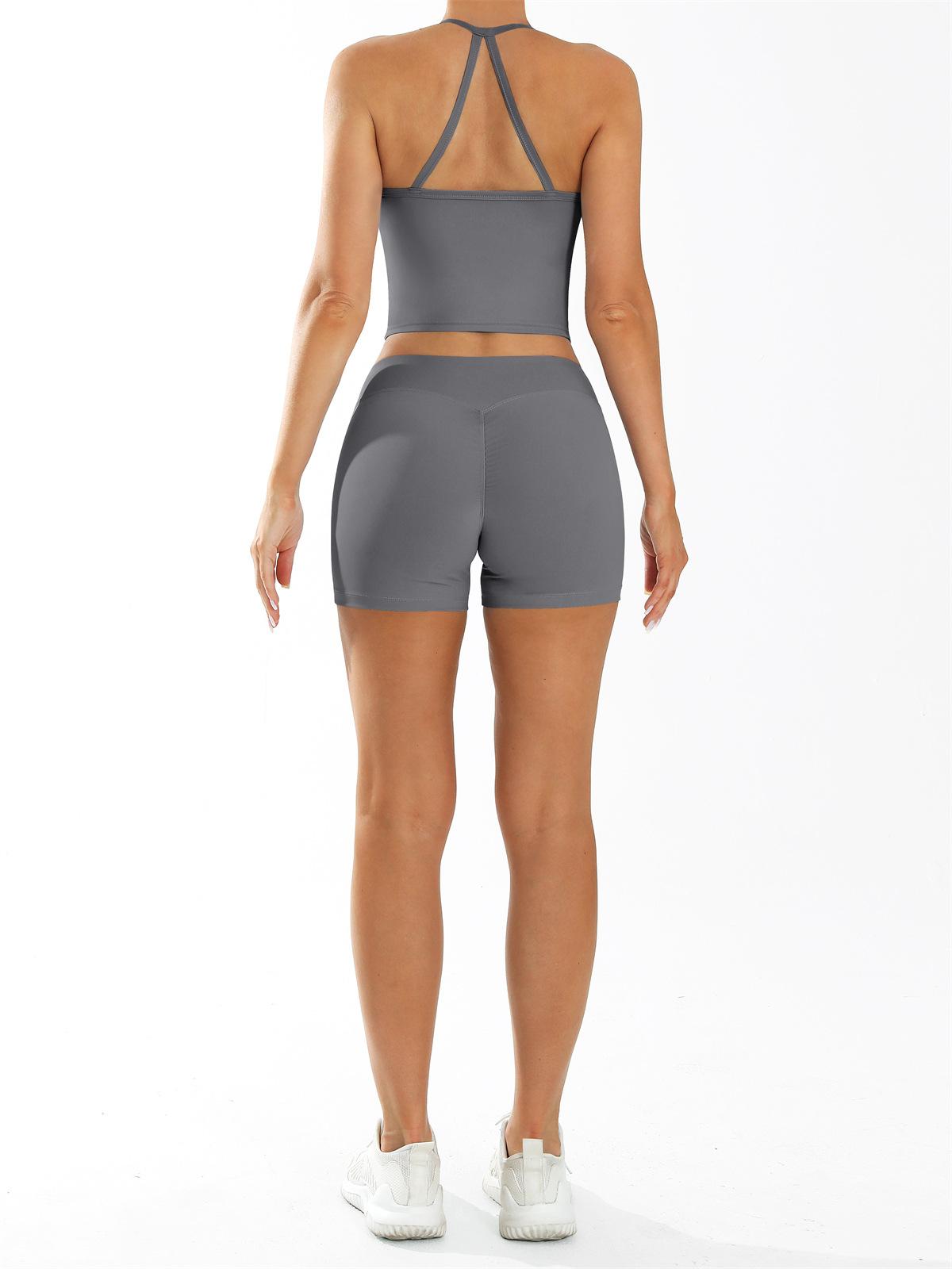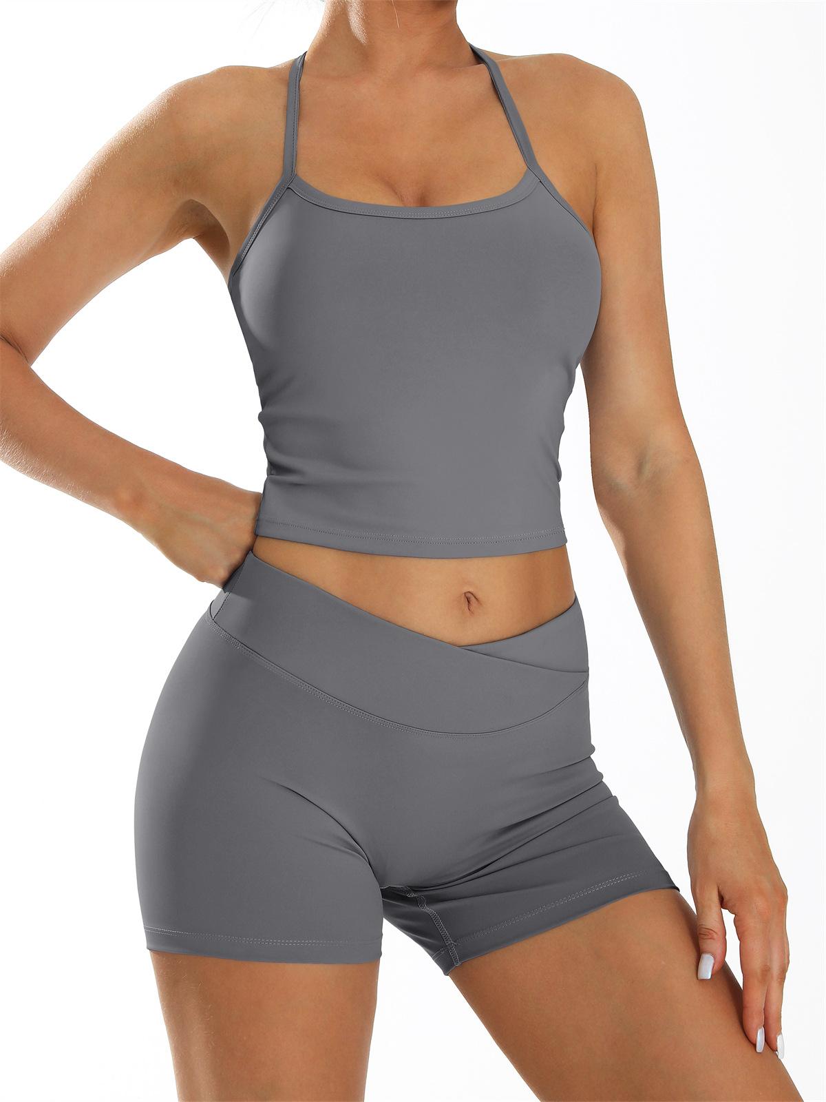 Conjunto de Ropa de Yoga Transfronterizo de Secado Rápido Ropa de Fitness para Correr al Aire Libre Chaleco de Yoga y Shorts Deportivos 8005