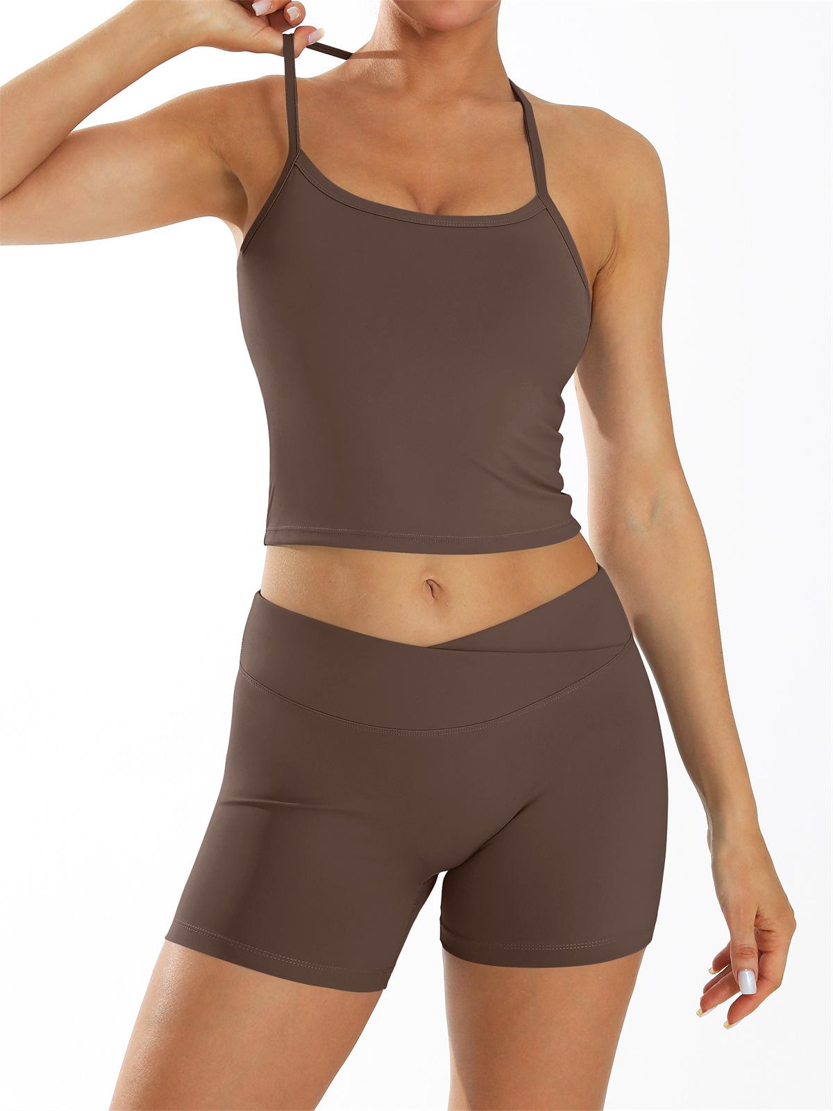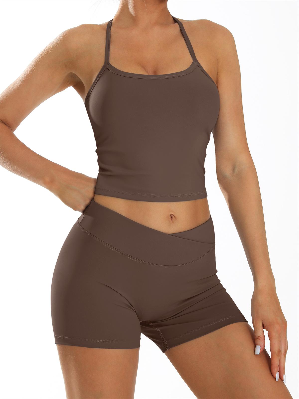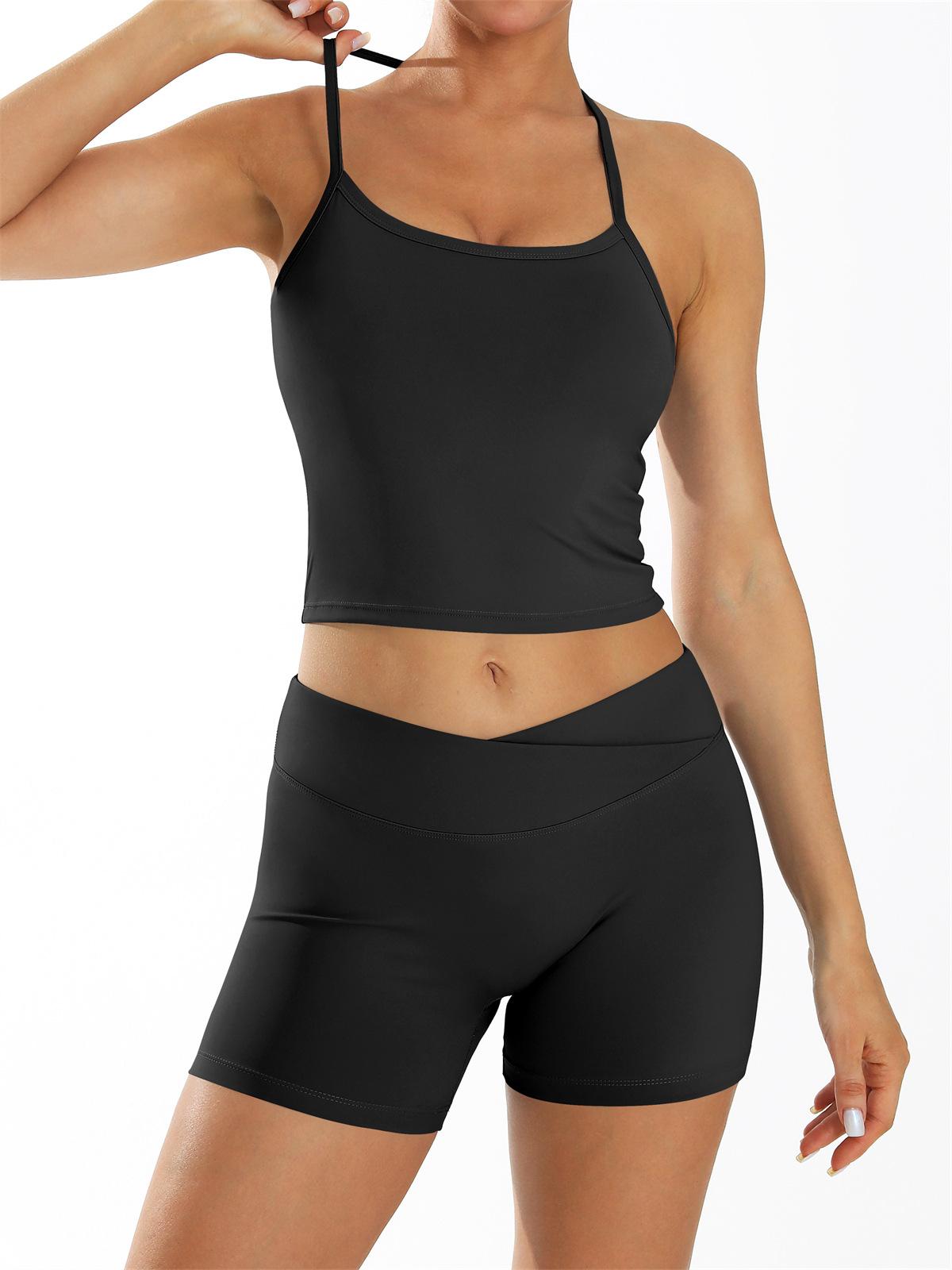 Conjunto de Ropa de Yoga Transfronterizo de Secado Rápido Ropa de Fitness para Correr al Aire Libre Chaleco de Yoga y Shorts Deportivos 8005