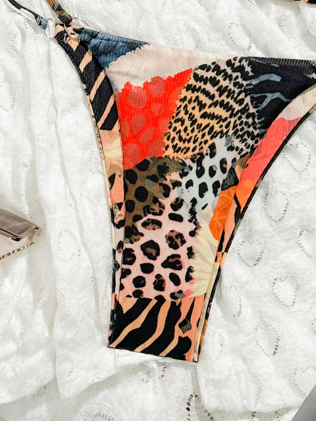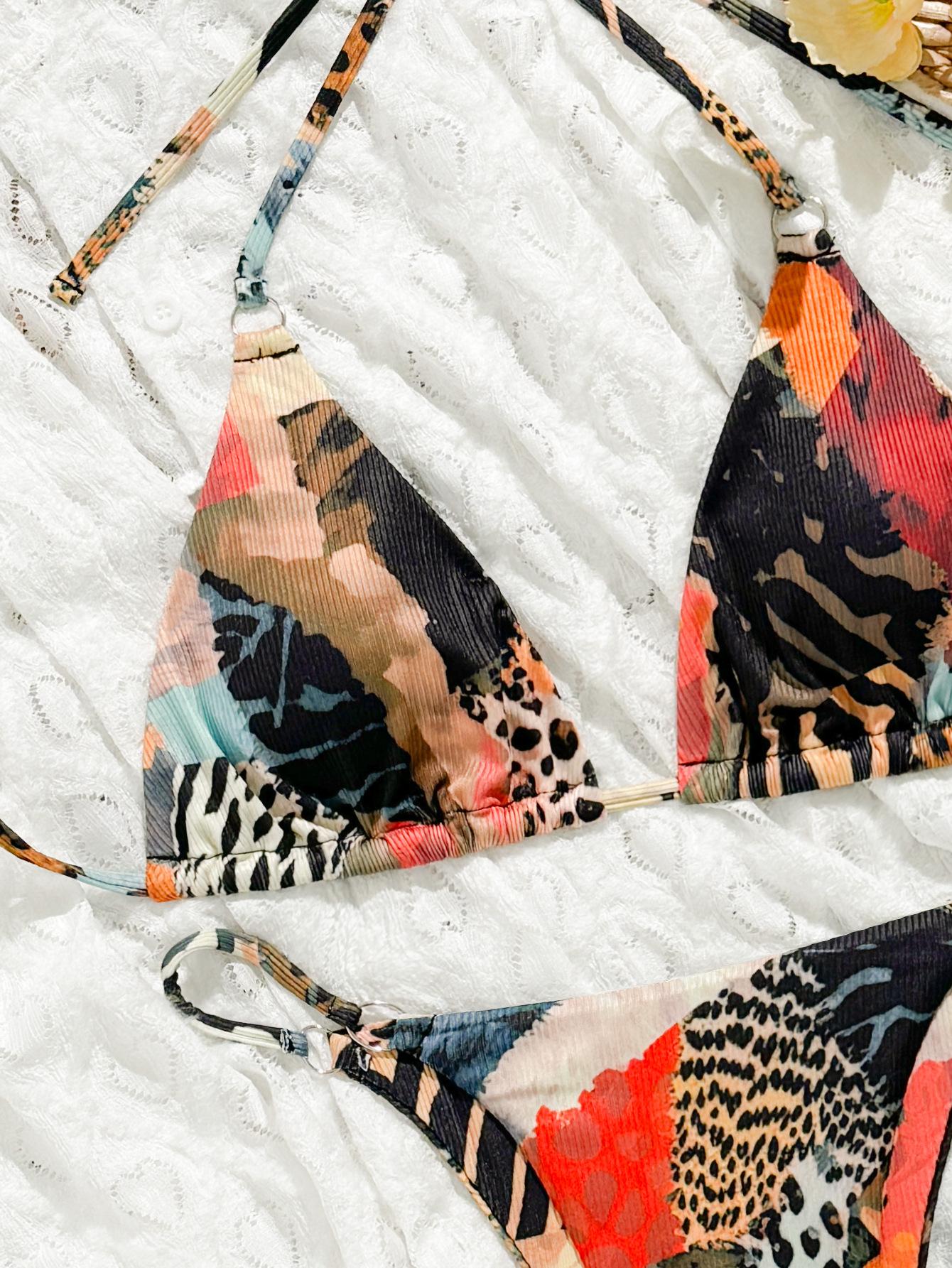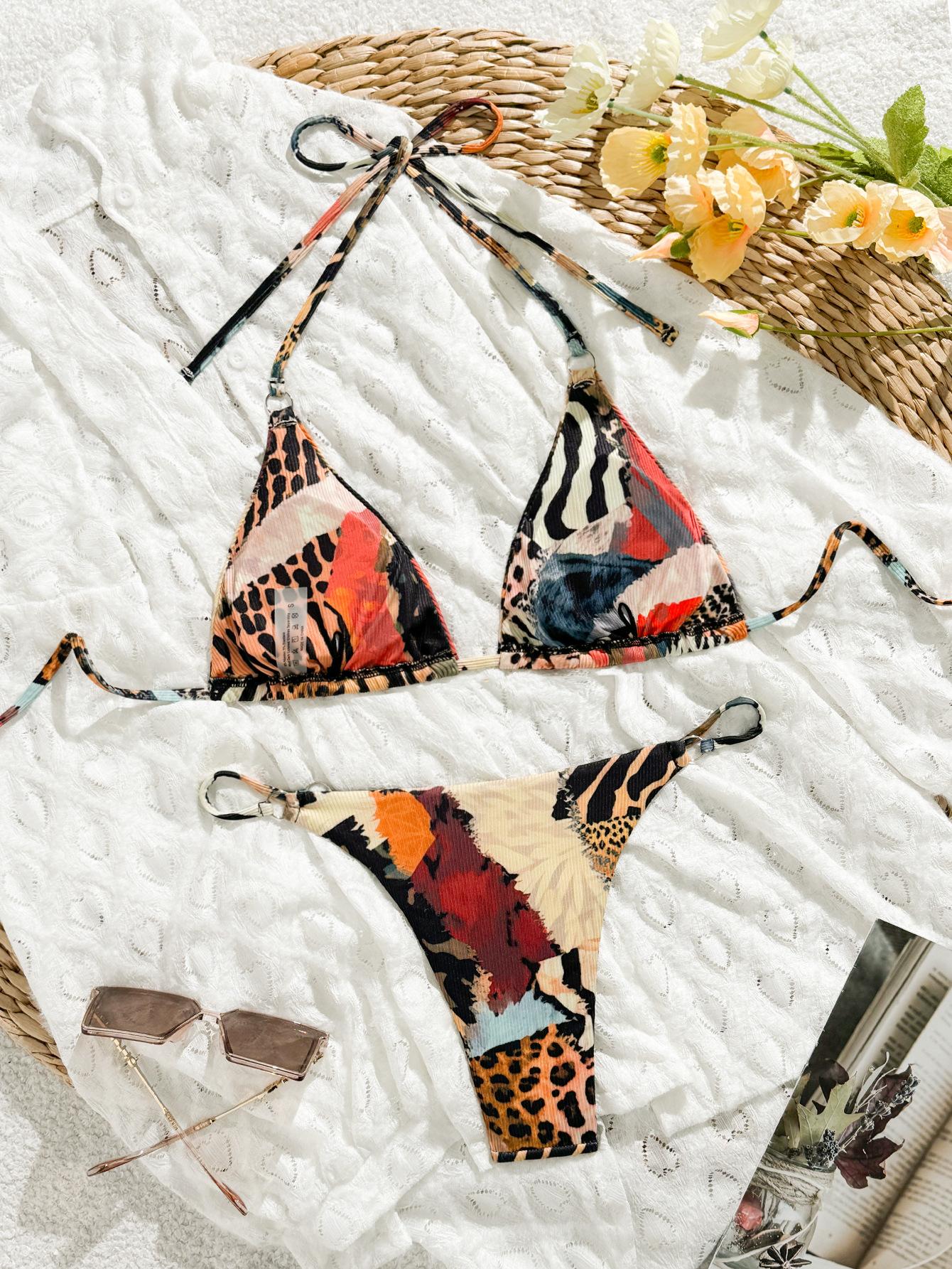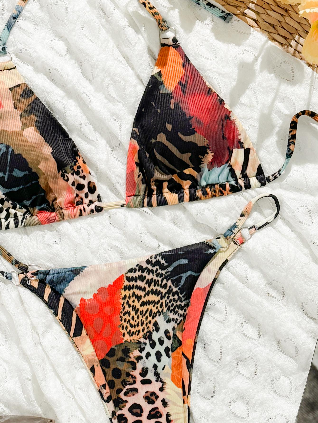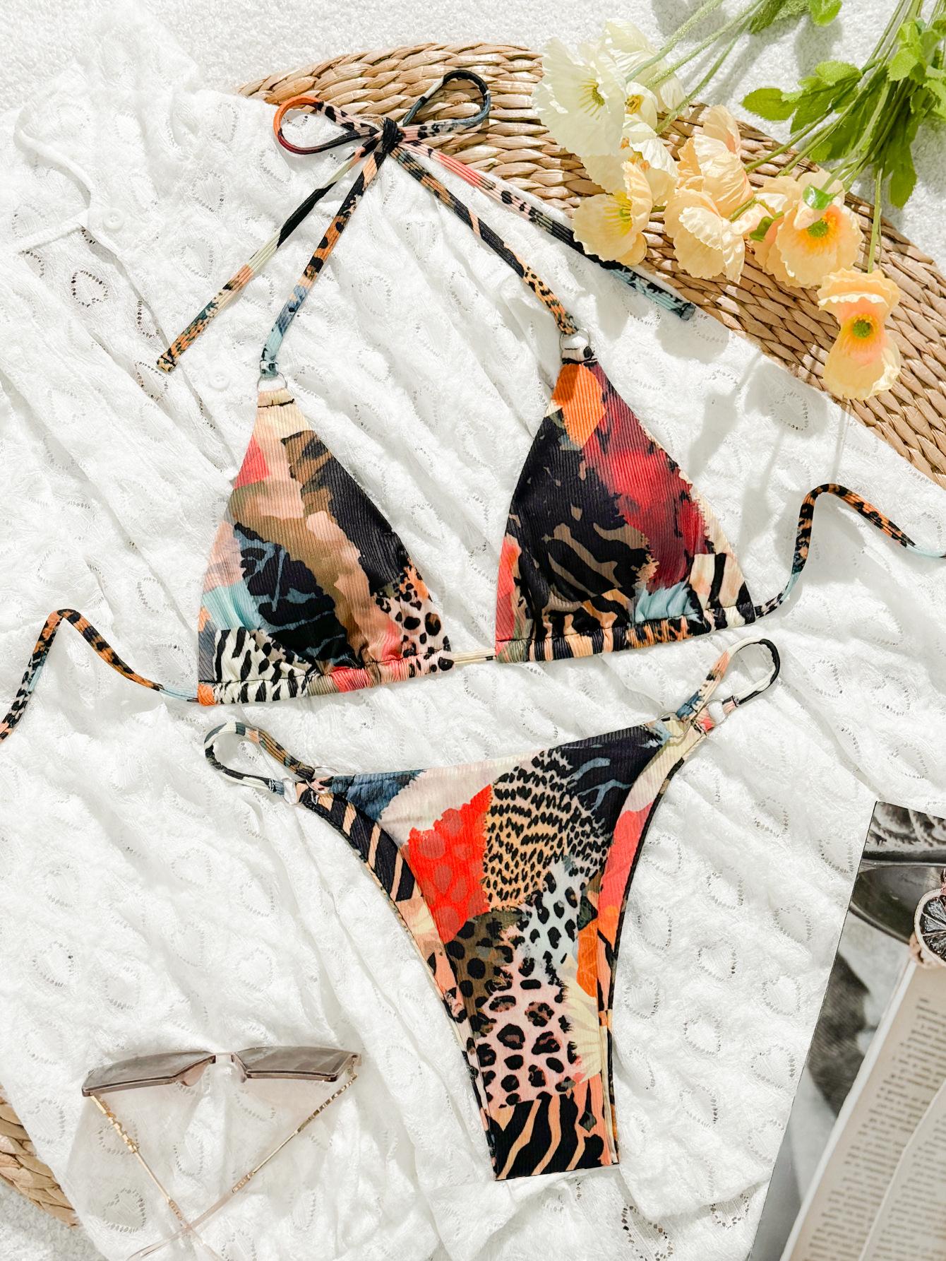 2025 Nuevo Traje de Baño Transfronterizo Europeo y Americano con Estampado y Cordones para Mujer Bikini Sexy de Tres Piezas para Playa y Aguas Termales