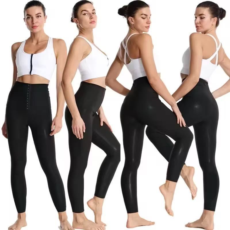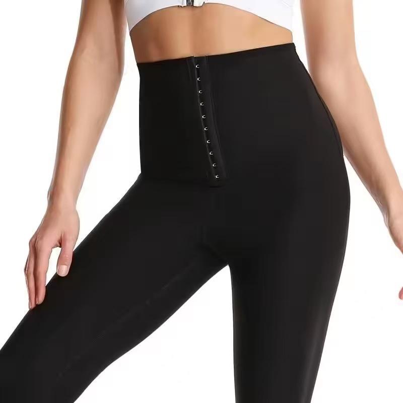 Pantalón de Sudor Transfronterizo Traje de Yoga Ajustado Cintura Alta Hebilla Quema Grasa Pantalones de Yoga Ropa Deportiva de Fitness Pantalón de Sudor Levanta Cadera para Mujer