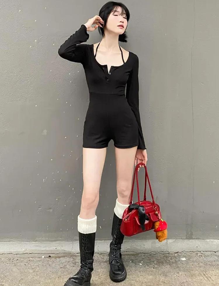 Europeo y Americano Calle Principal Puro Deseo Chica Caliente Diseño Nicho Moda Versátil Delgado Shorts Enterizo para Mujer Chic