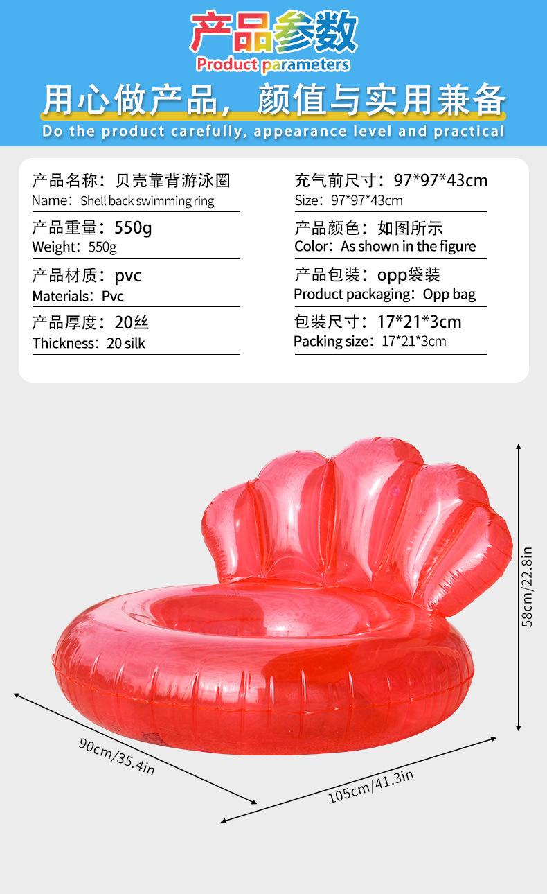 Nuevo flotador inflable transfronterizo, flotador con respaldo para adulto con forma de concha marina, anillo de agua, anillo de asiento, venta al por mayor de flotadores de Amazon