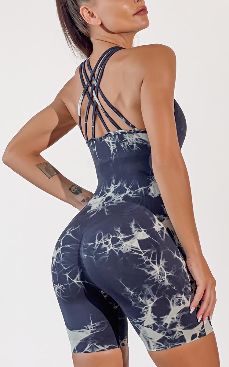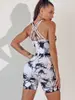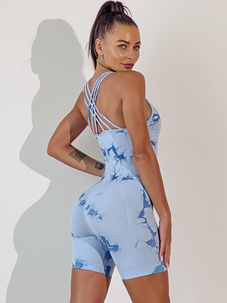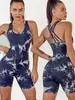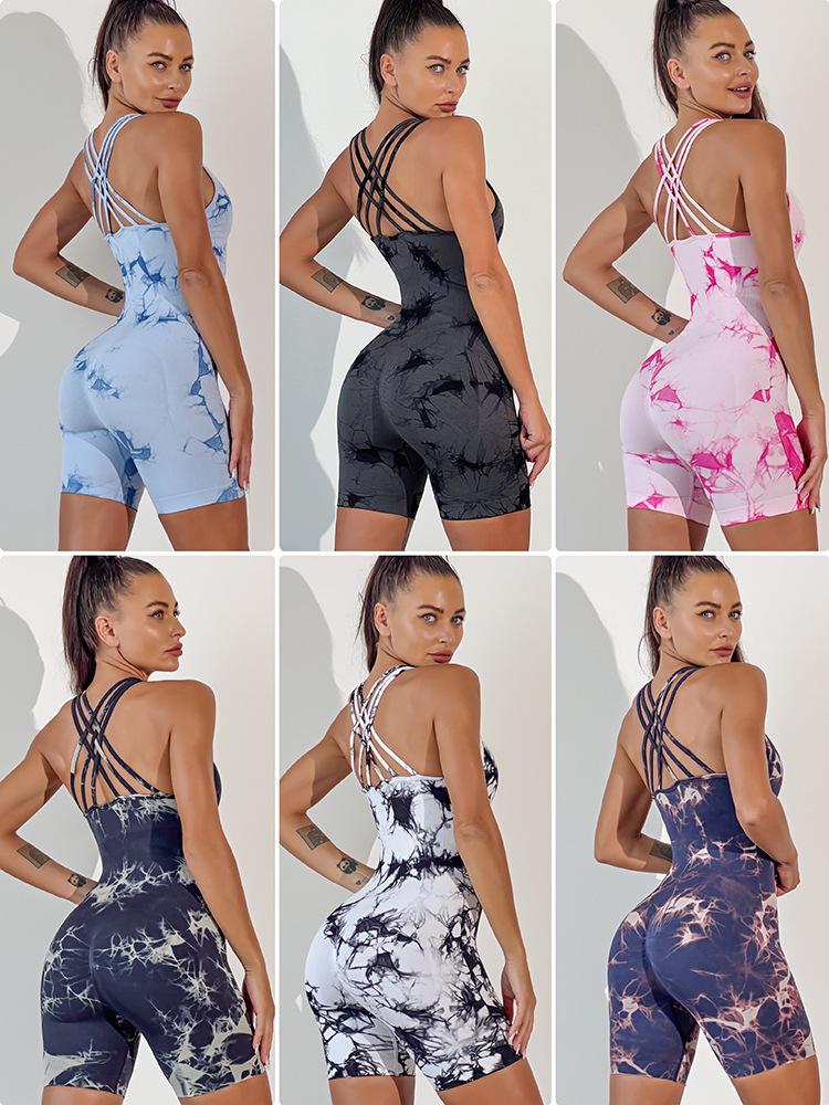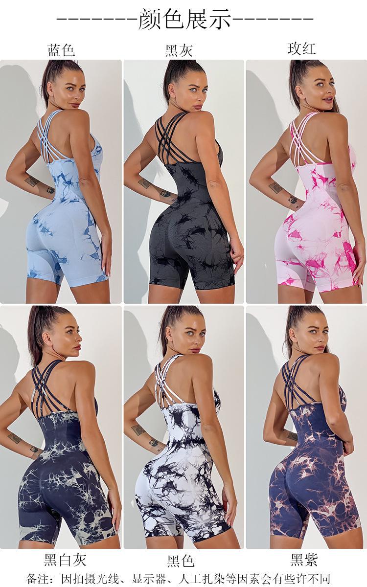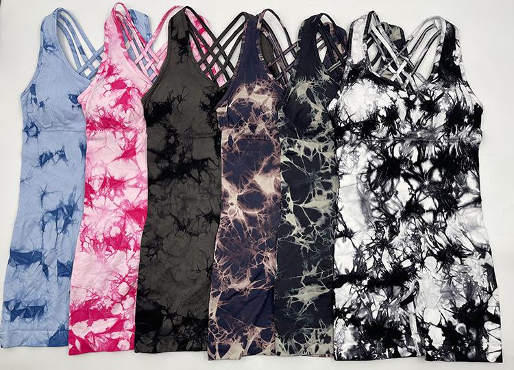 Traje de una pieza tie-dye europeo y americano para yoga para mujer, sexy, de una pieza, tipo chaleco, ajustado, sin costuras, de secado rápido, ropa de fitness para yoga para mujer