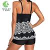 Amazon Transfronterizo Nuevo Europeo y Americano Sexy Talla Grande Dividido traje de baño bóxer Falda Estampada para Mujer Traje de Baño Conservador
