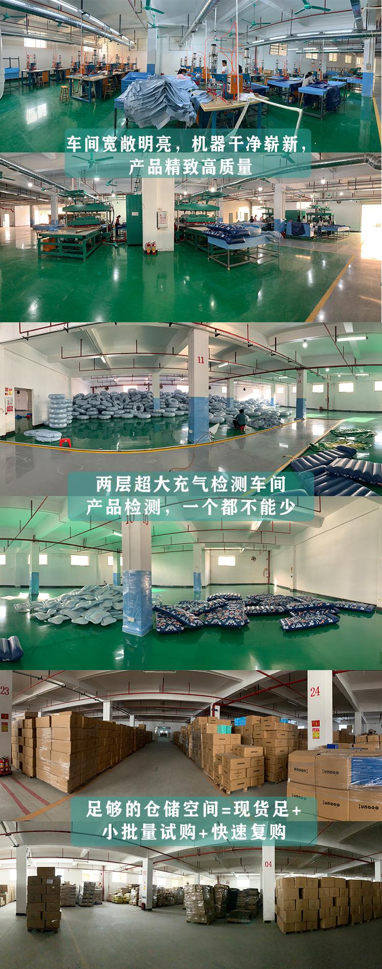 La empresa produce principalmente diversos productos de PVC y TPU como flotadores inflables para agua, piscinas inflables, piscinas para mascotas, regalos publicitarios de PVC, juguetes inflables para agua para exteriores y camas inflables flocadas, y se compromete a brindar a los clientes un servicio profesional integral de I+D, producción y ventas. Nuestro propio equipo de diseño le proporciona renders 3D y servicios de diseño plano, con muestreo rápido y exquisito; el personal de gestión del taller tiene más de 10 años de experiencia en la producción de productos de PVC, lo que garantiza una calidad estable; el equipo de ventas profesional le brinda asesoramiento y servicio profesionales y sin preocupaciones.