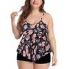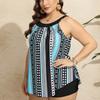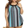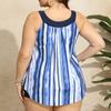 [Tankini Europeo y Americano de Talla Grande para Mujer] Traje de Baño Boxer Estampado a Rayas Holgado Cubre Vientre Adelgazante Cintura Alta