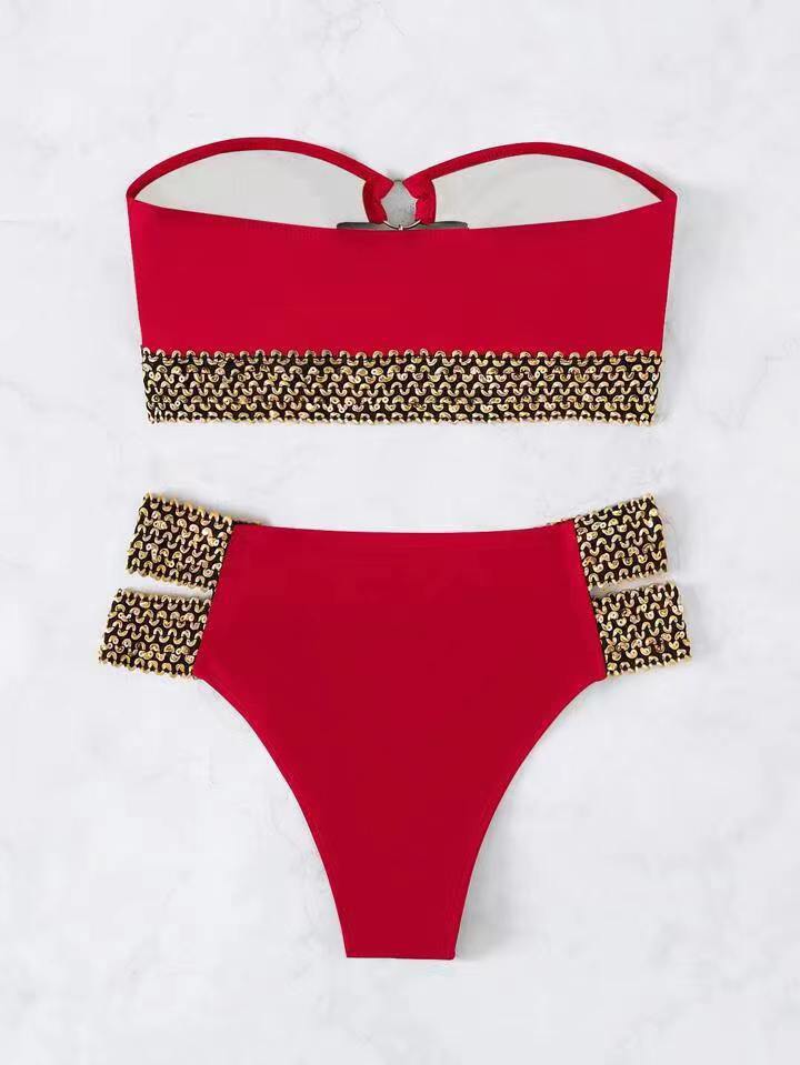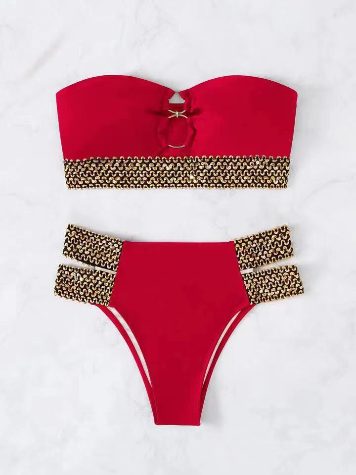 Bikini de comercio exterior europeo y americano 2025 nuevo traje de baño dividido para mujer traje de baño estilo ins bikini de playa sexy hueco
