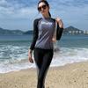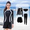 Traje de baño para mujer, estilo conservador, estilo coreano, con aberturas laterales, para deportes, estudiantes, aguas termales, pantalones de manga larga, ajustado, que cubre el vientre.