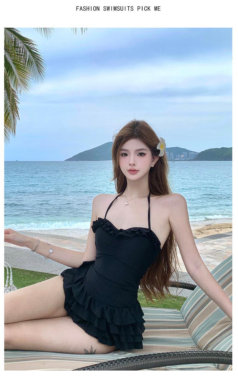 Traje de Baño de Una Pieza Impresionante para Vacaciones para Niña 2025 Nuevo Estilo Ballet Falda de Pastel Adelgazante Simple Sexy Mujeres
