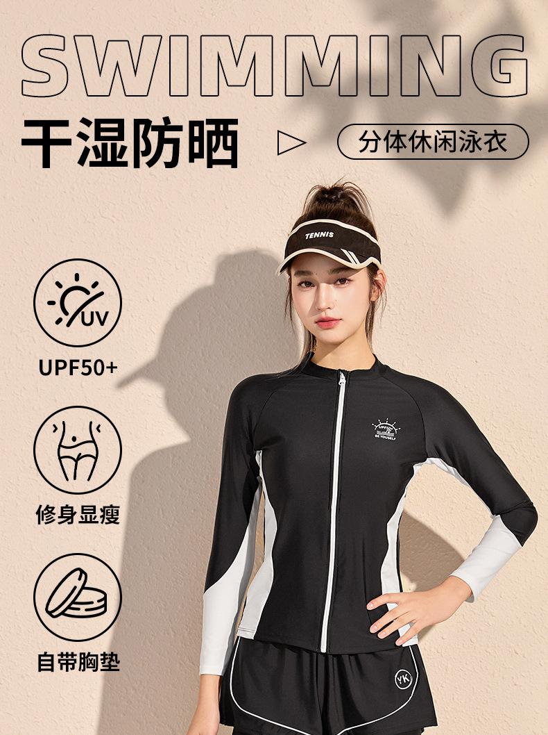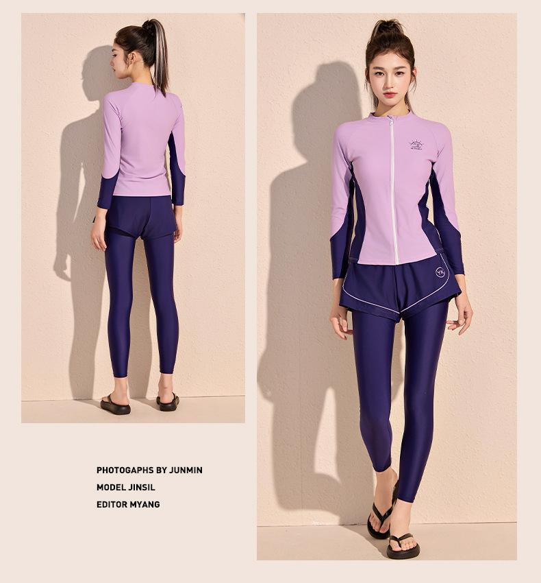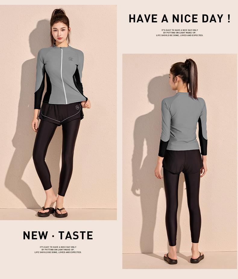 Traje de baño nuevo para mujer de manga larga y pantalón largo 2025 verano conservador dividido protector solar traje de medusa traje de surf set para aguas termales