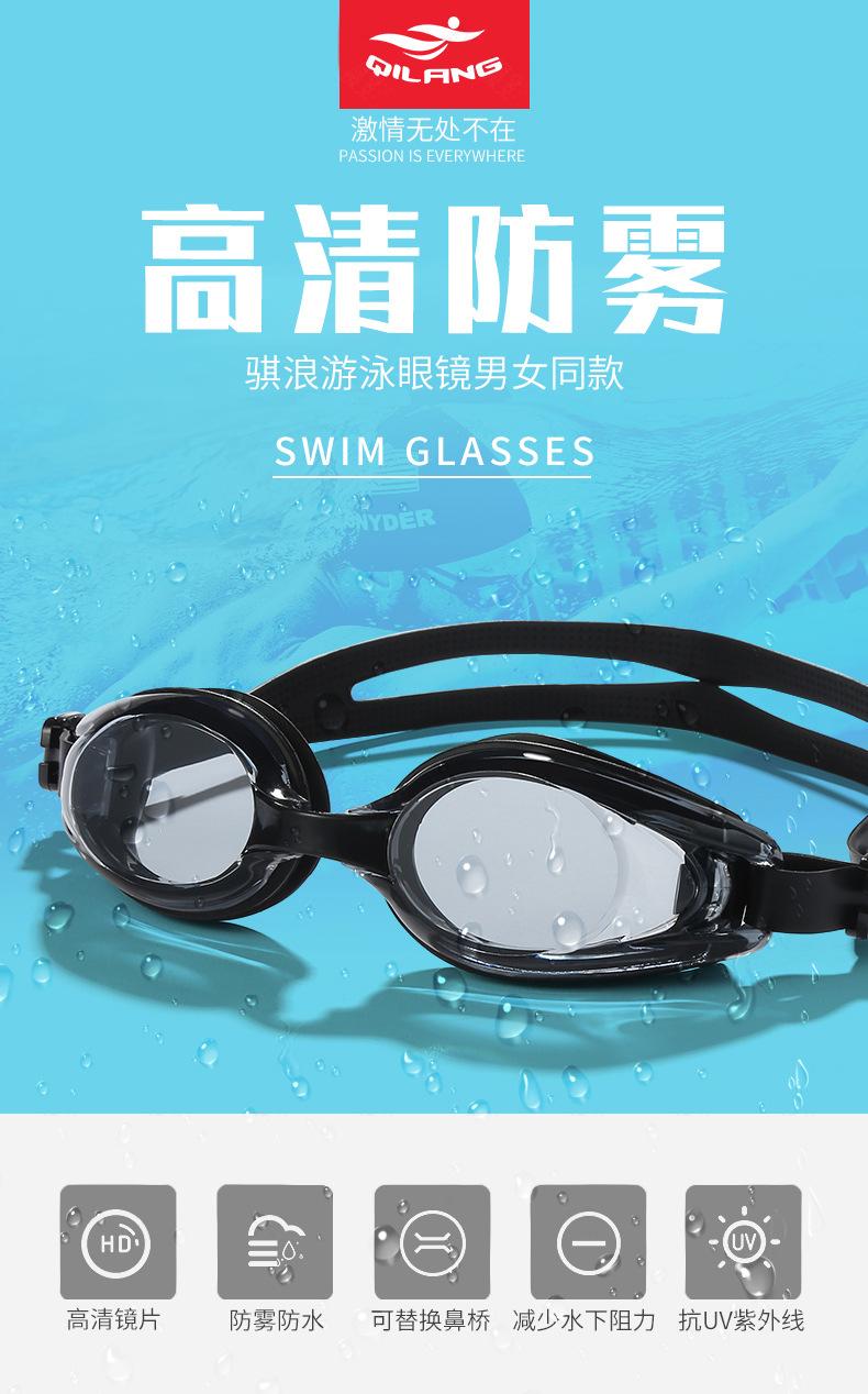 Qilang gafas de natación antivaho gafas de natación adulto hombres y mujeres embolsadas alta definición planas de silicona gafas de buceo transfronterizas K268 |