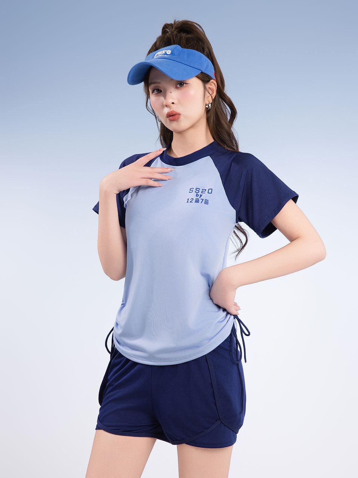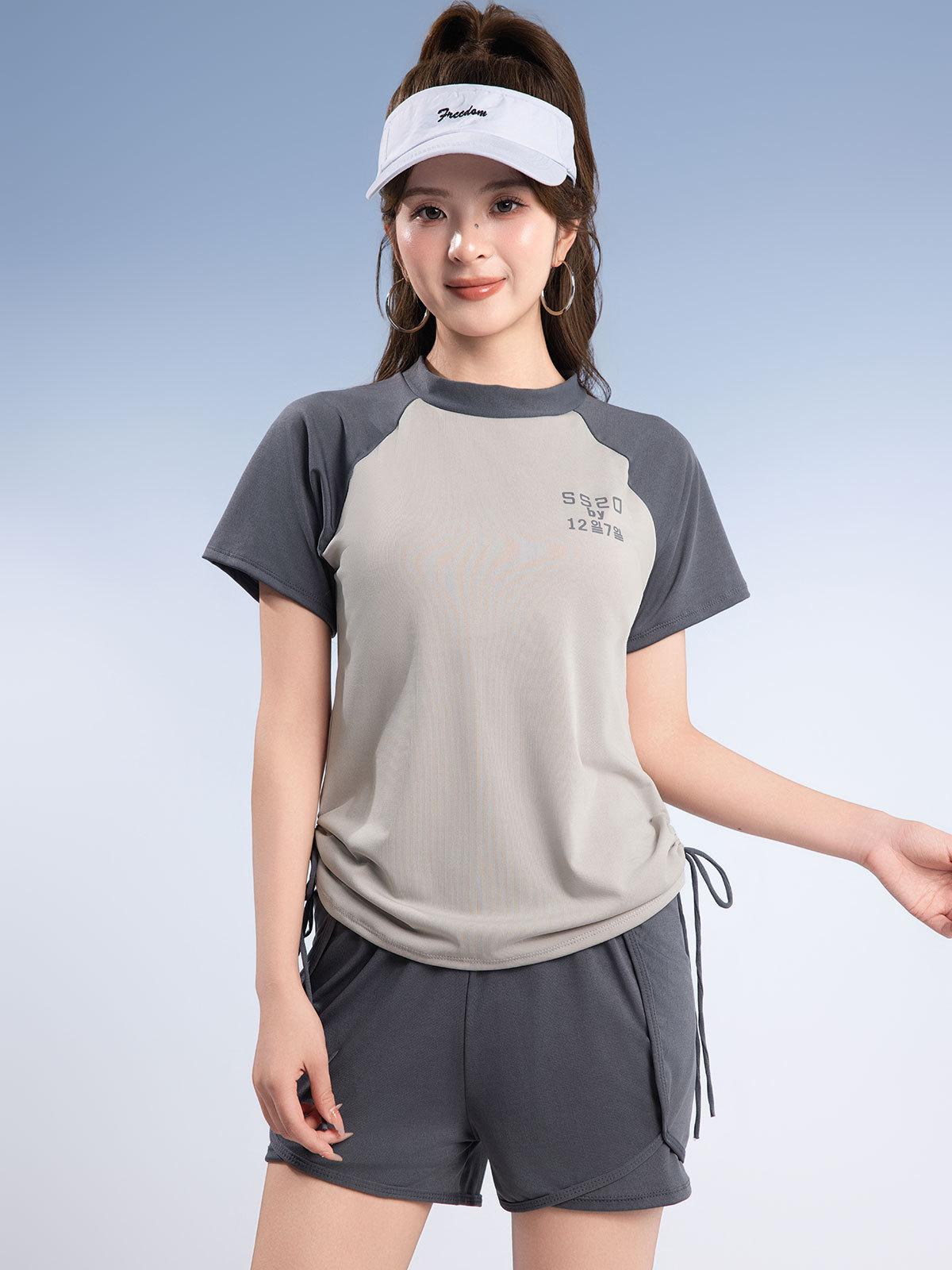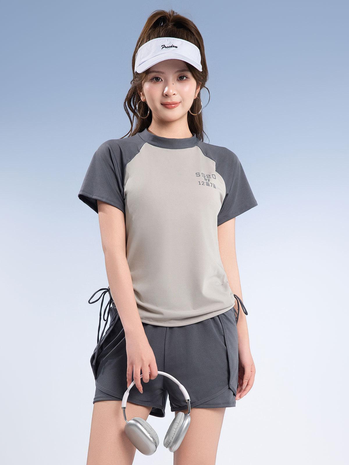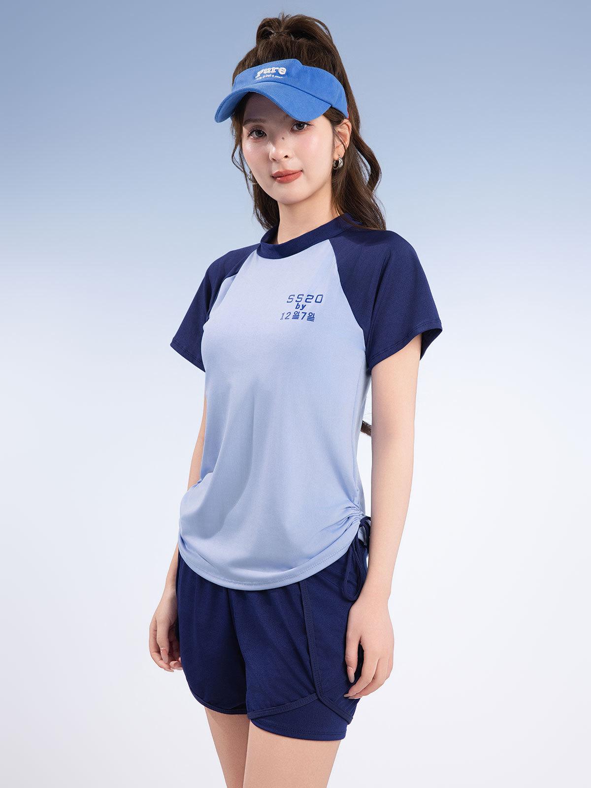 Traje de baño deportivo de talla grande para mujer, especial para piscina, para chica gordita, de dos piezas, conservador, de manga corta con shorts, hasta 90.00 kg
