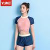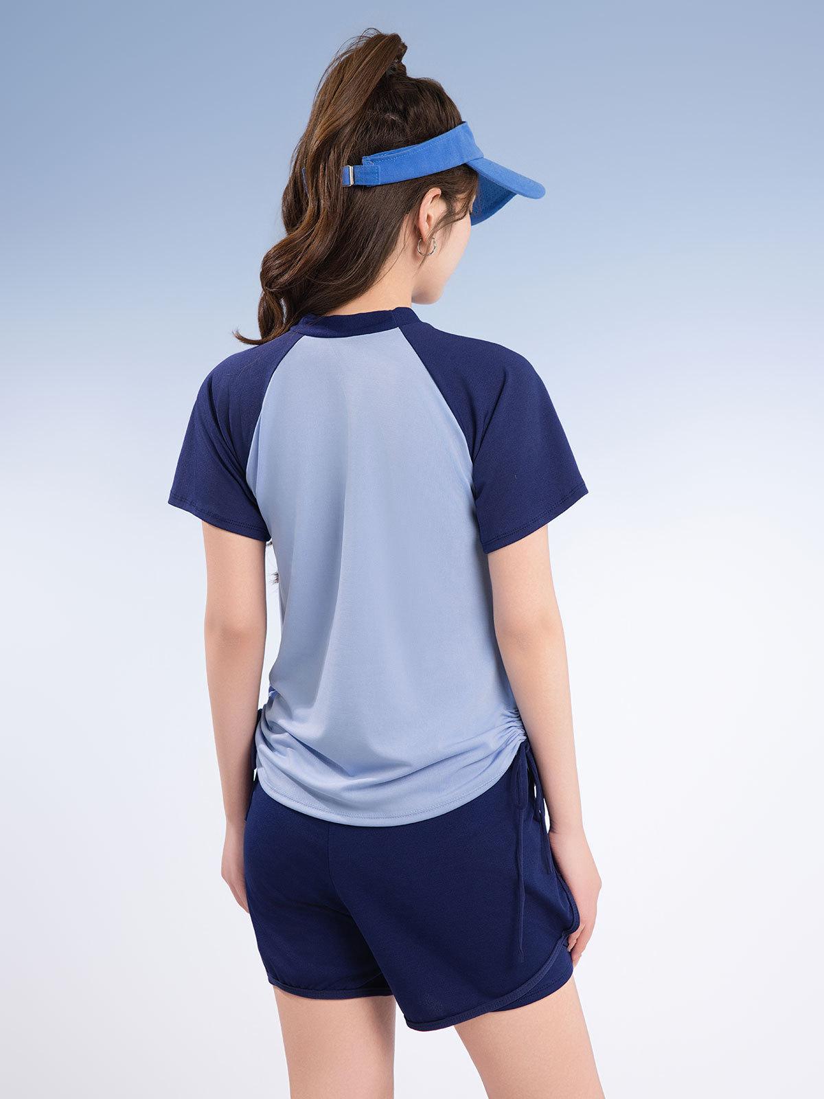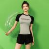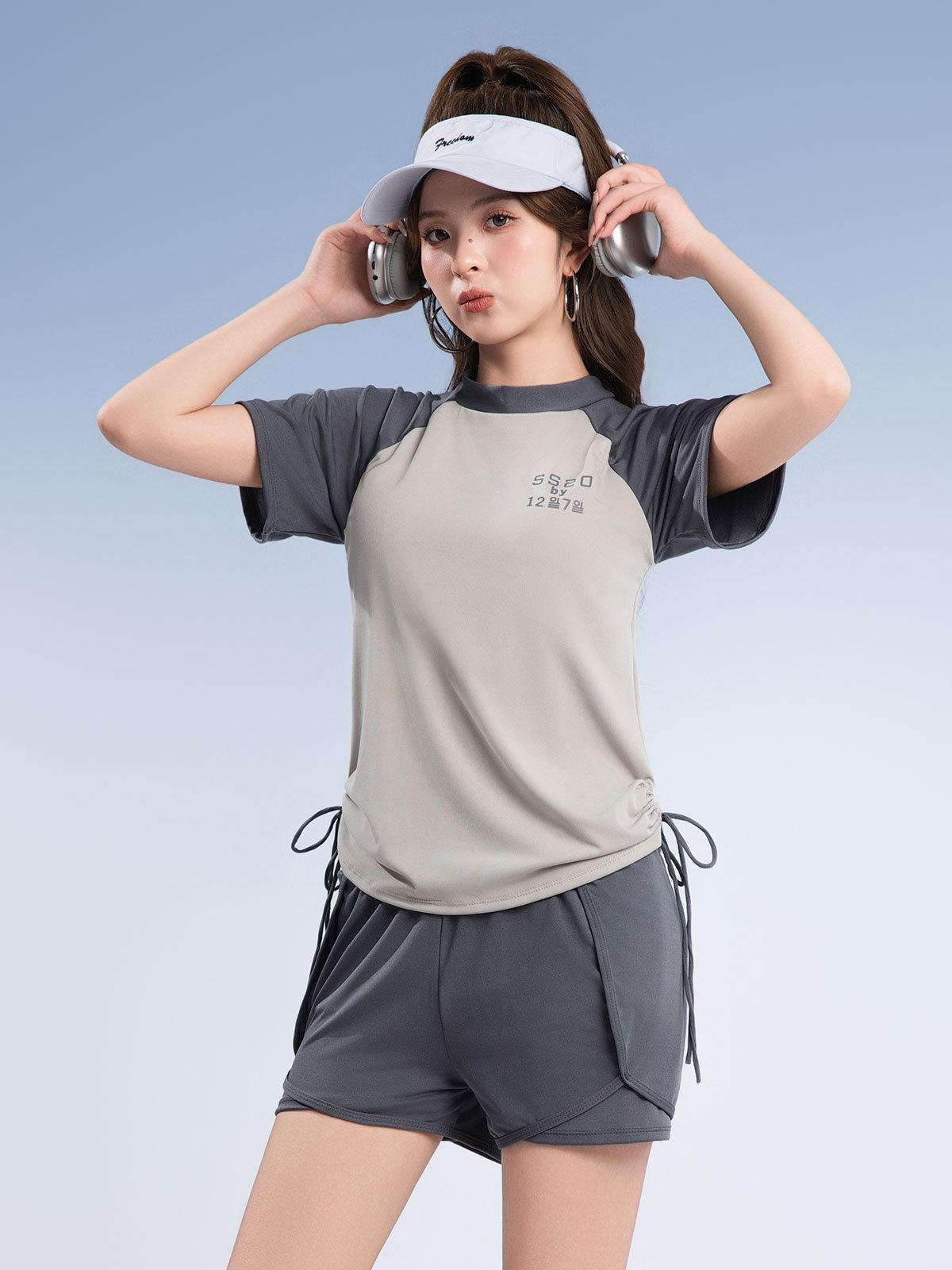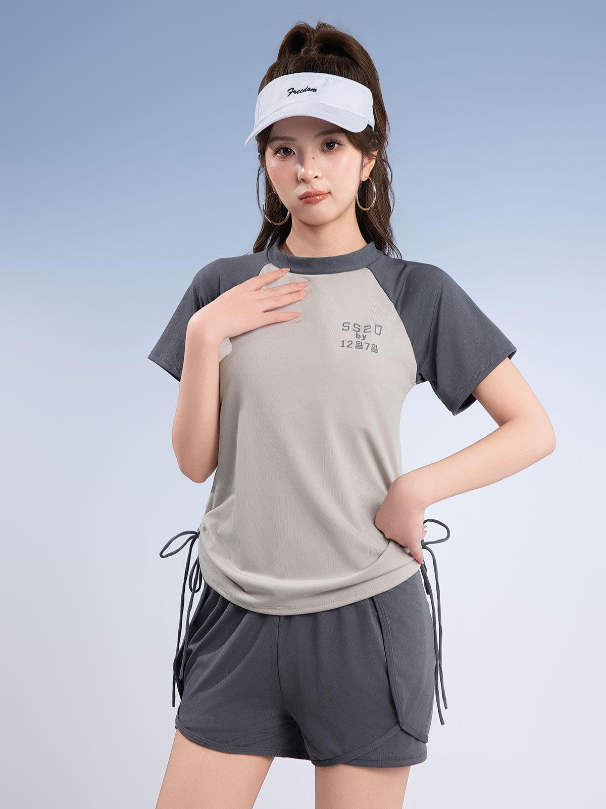 Traje de baño deportivo de talla grande para mujer, especial para piscina, para chica gordita, de dos piezas, conservador, de manga corta con shorts, hasta 90.00 kg
