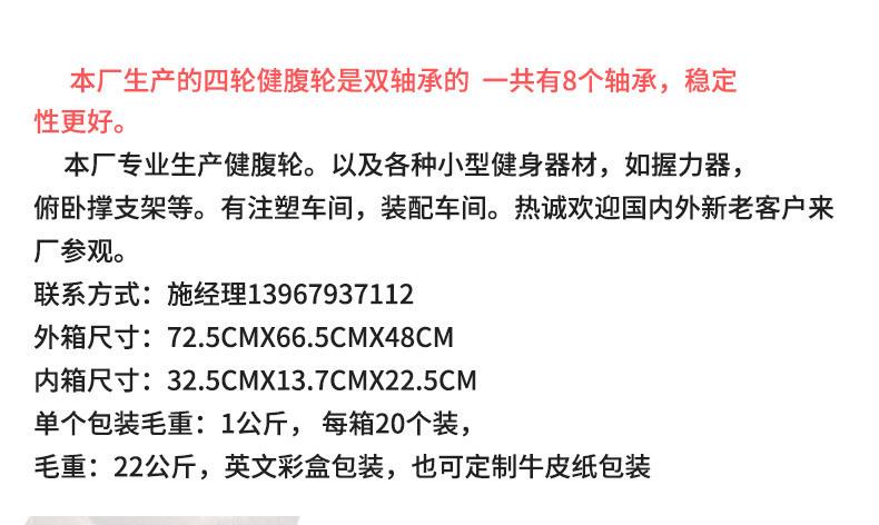 Double-bearing abdominal wheel in color box comes with [kneeling pad + brake plate]