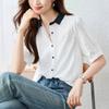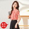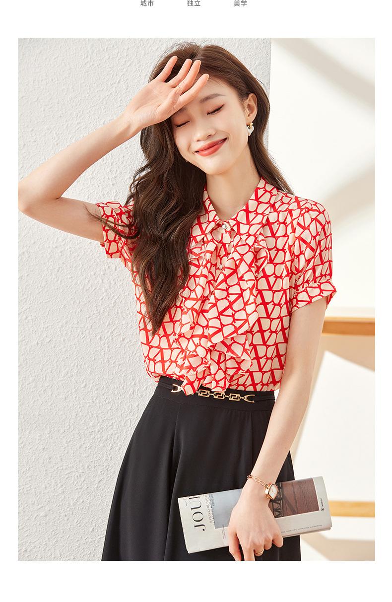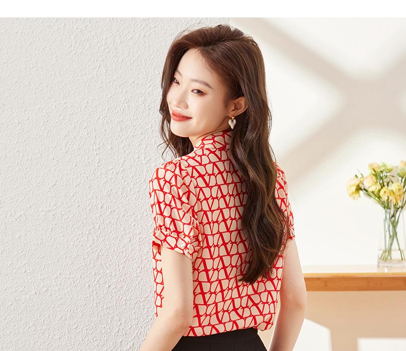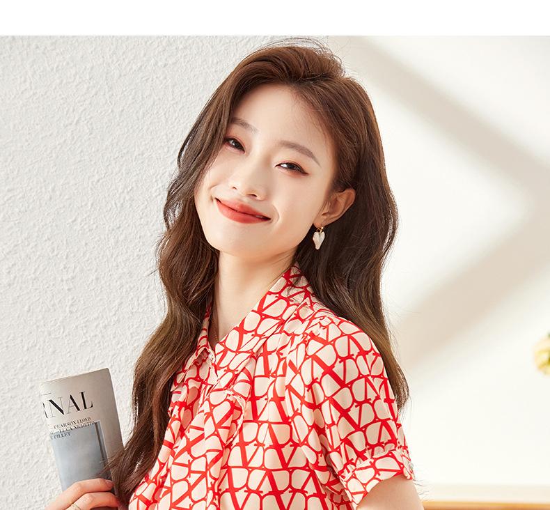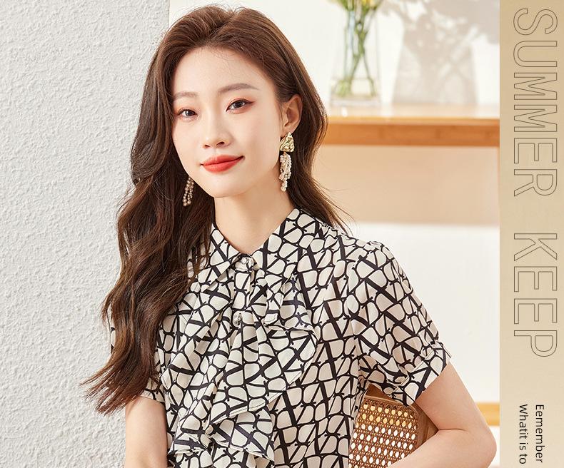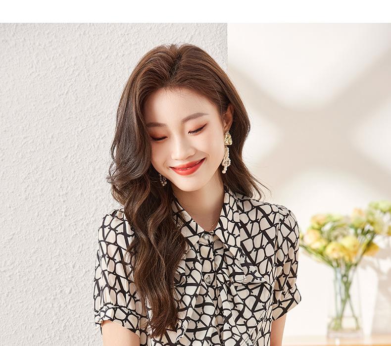 Camisa de Manga Corta para Mujer Estilo Verano 2025, Camisa de Chifón de Seda Talla Grande, Top a Cuadros Estampado, Estilo Trendy