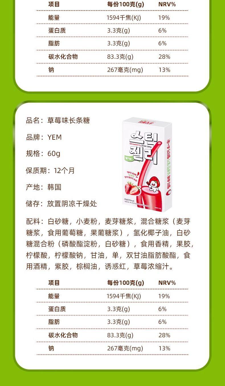 Green grape flavored candy bars 60g*1 box, Strawberry flavored long candy 60g*1 box