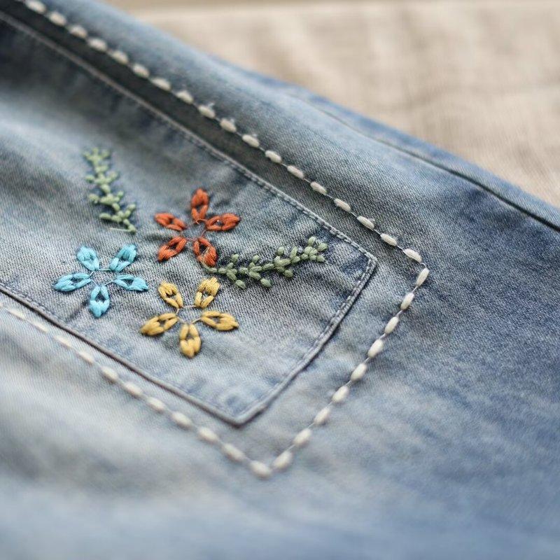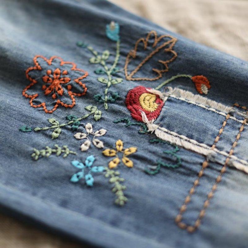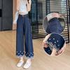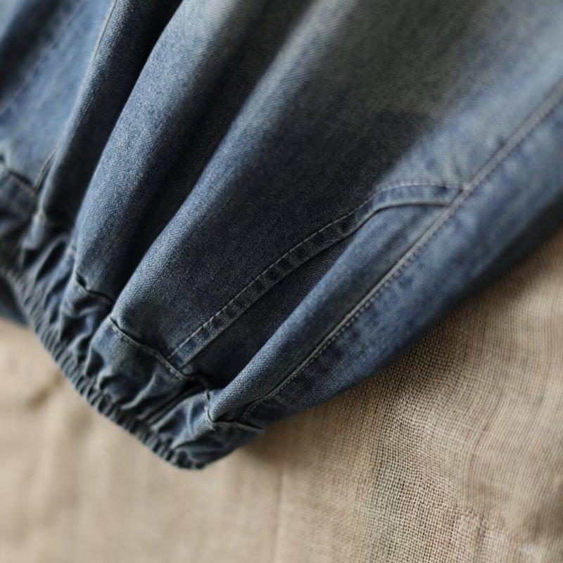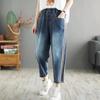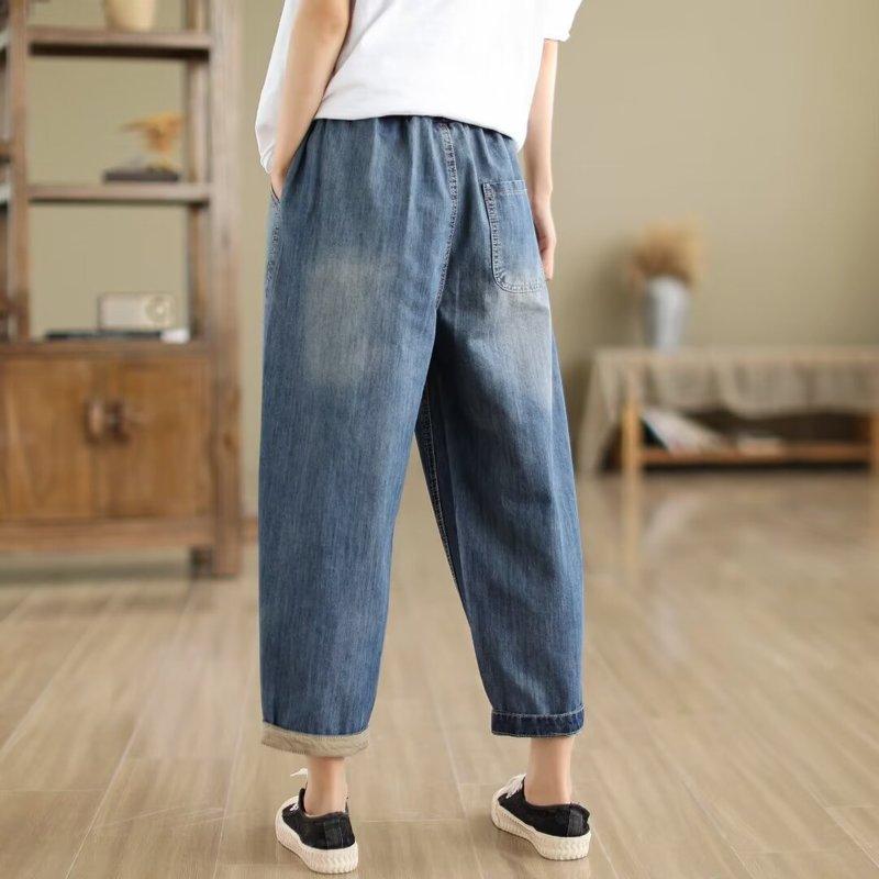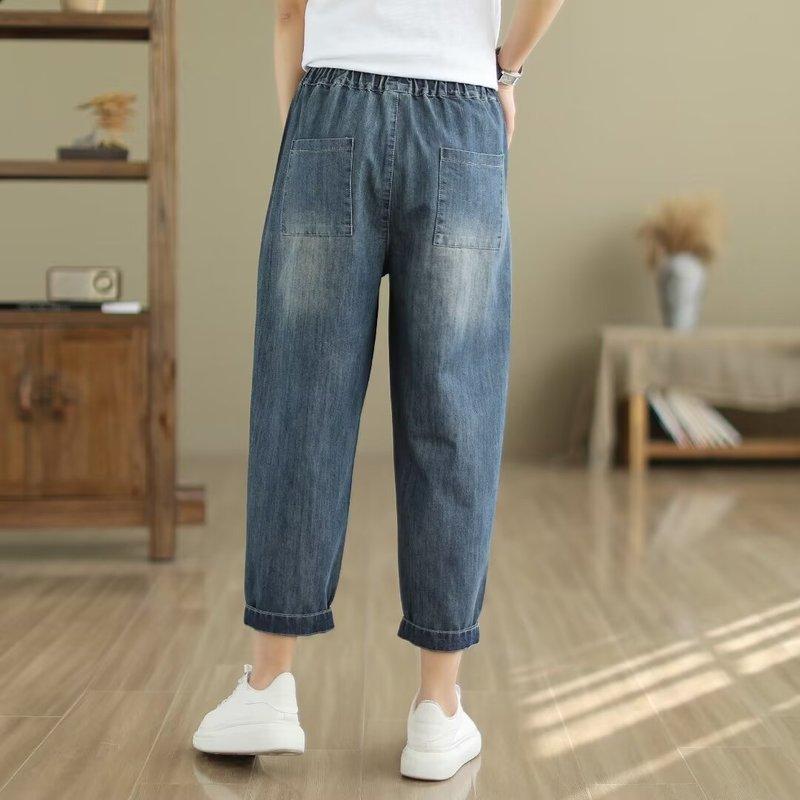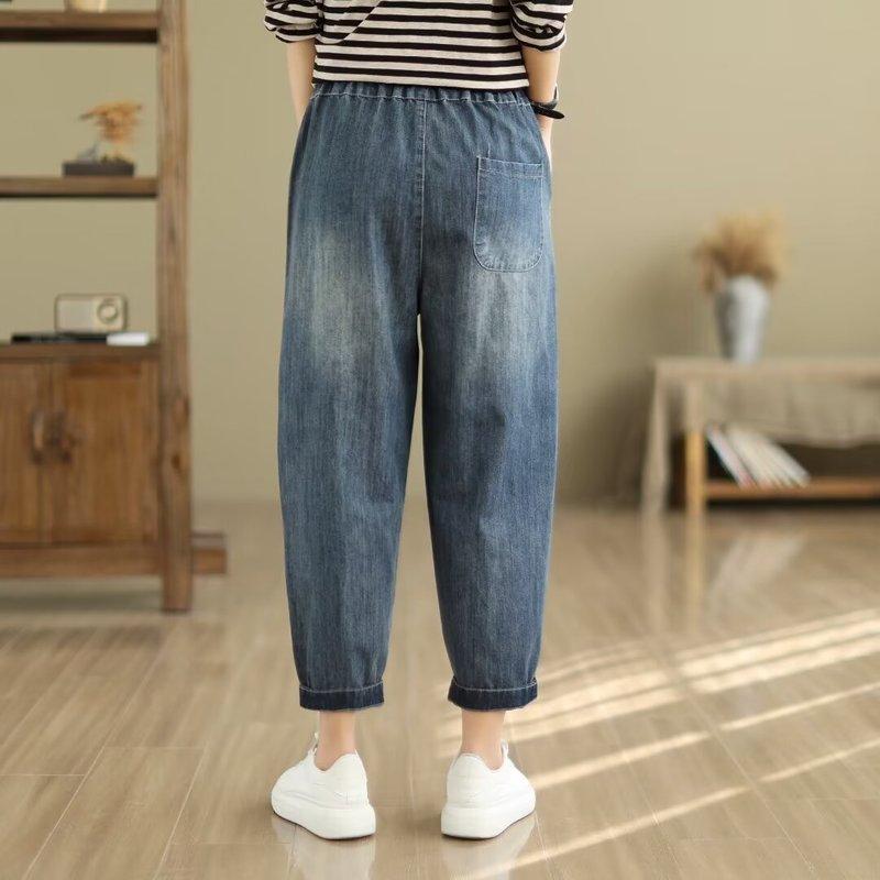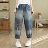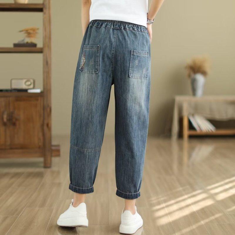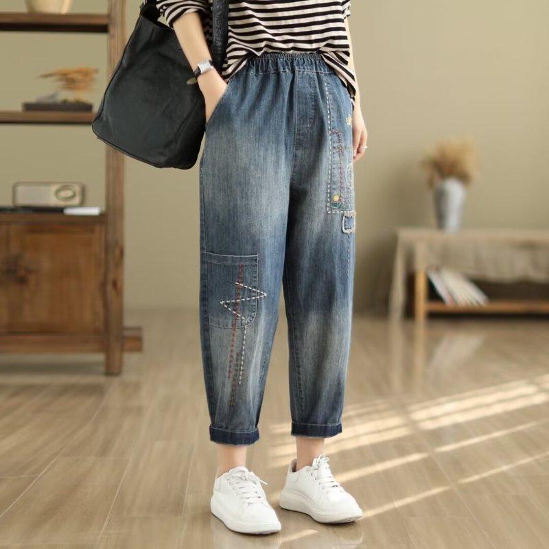 Primavera/Verano 2024 Nuevo jarrón de parche retro bordado pantalones harem sueltos casuales de mezclilla capri para mujer