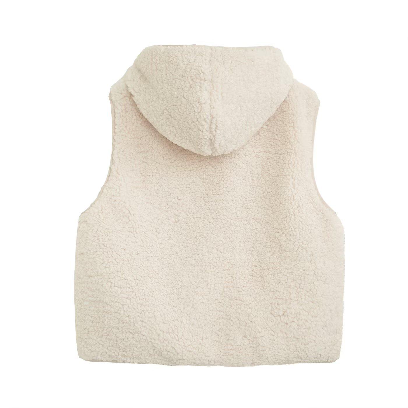 Ropa de Mujer Transfronteriza 2025 Invierno Europeo y Americano Forro Polar con Capucha Sin Mangas Bolsillo con Cremallera Chaleco Chaleco Casual y Cálido para Mujer