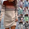 Amazon wish cuello redondo transfronterizo para mujer otoño e invierno ropa de mujer comercio exterior Europa y Estados Unidos estampado de cuatro flores suéter casual de manga larga